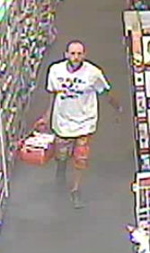The suspect is described as a white male, 25-35 years of age. He was 6’00”, weighs approximately 190 lbs., and has a bald head and multiple tattoos on his arms.