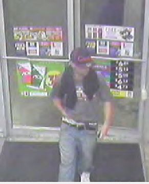 The suspect was described as a white male, 5’08”-5’09” tall, weighed 150-170 lbs., and was last seen wearing a black and red baseball hat, grey t-shirt, blue jeans, white sneakers, and had a black scarf covering his face. There is no further physical or clothing description available.