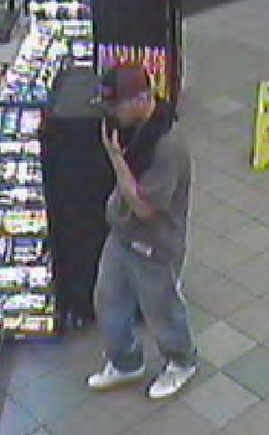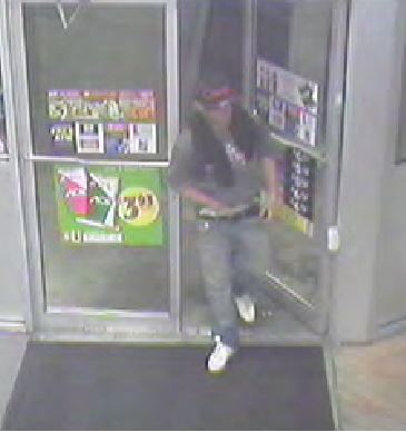 The suspect was described as a white male, 5’08”-5’09” tall, weighed 150-170 lbs., and was last seen wearing a black and red baseball hat, grey t-shirt, blue jeans, white sneakers, and had a black scarf covering his face. There is no further physical or clothing description available.