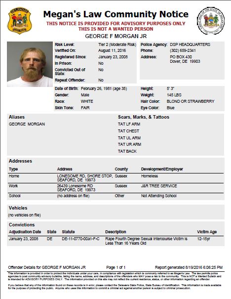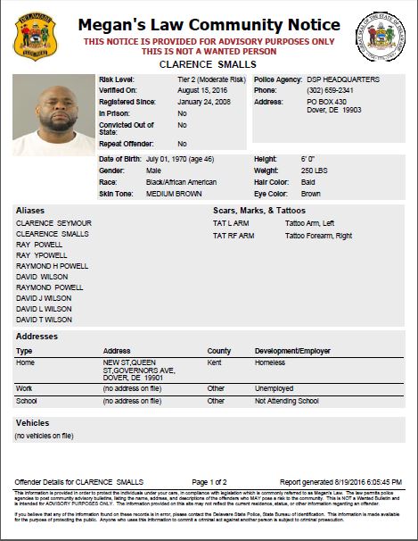 Dover- The following are not wanted. This is a Homeless Sex Offender Public Notification. If you have information that any of the listed subjects are occupying a residence, please contact 302-672-5306. Information may also be provided via the internet at www.delaware.crimestoppersweb.com or by sending an anonymous tip by text to 274637 (CRIMES) using the keyword “DSP.”