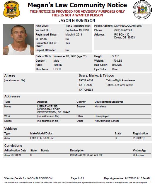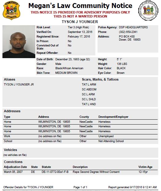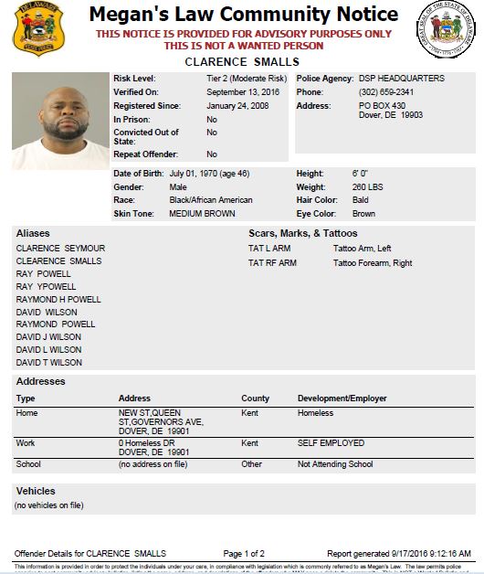 Dover– The following are not wanted. This is a Homeless Sex Offender Public Notification. If you have information that any of the listed subjects are occupying a residence, please call 302-672-5306. Information may also be provided by calling Delaware Crime Stoppers at 1-800-TIP-3333, via the internet at http://www.delaware.crimestoppersweb.com or by sending an anonymous tip by text to 274637 (CRIMES) using the keyword “DSP.”