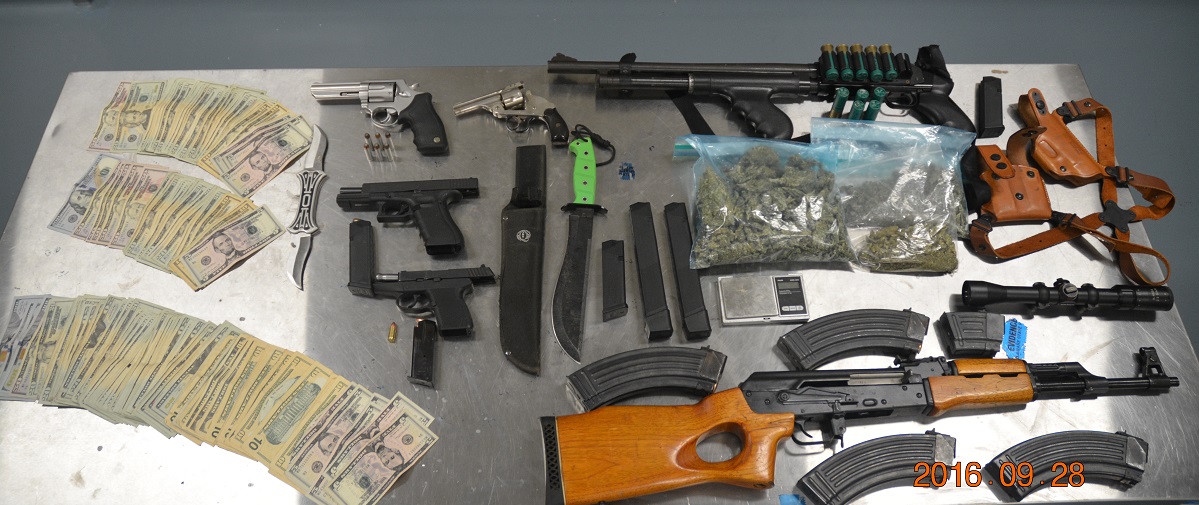 A second search warrant was conducted at a residence adjacent to the first house. Robert Harding, 22 of that address, was taken into custody without incident. A search of the domicile revealed 1.108 lbs. of marijuana along with a .357 caliber handgun, 7.62 AK47 rifle, 9mm handgun, .40 caliber handgun, .38 caliber handgun, a 12 gauge shotgun, and ammunition for the weapons. Over $4,000.00 in suspected drug proceeds was also seized.