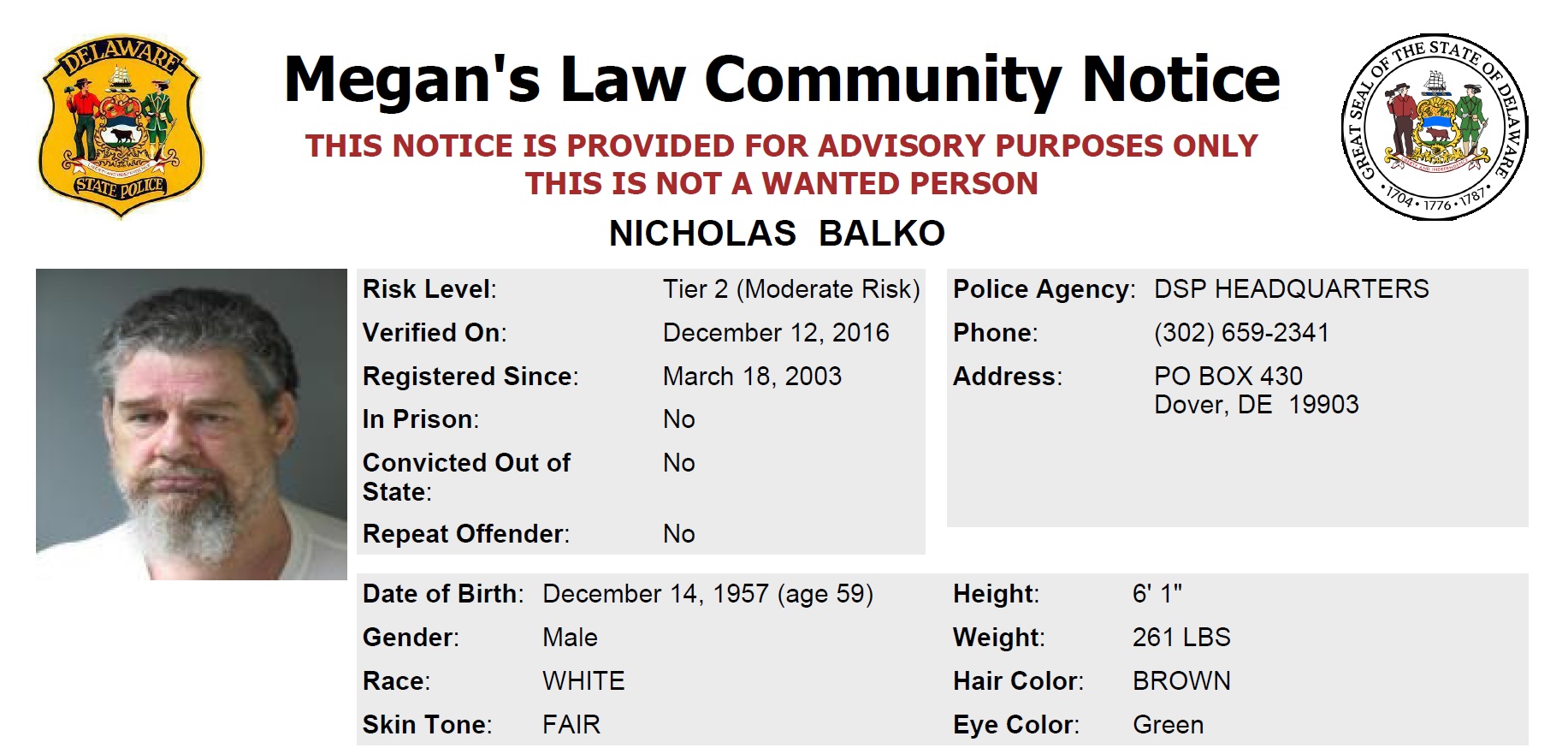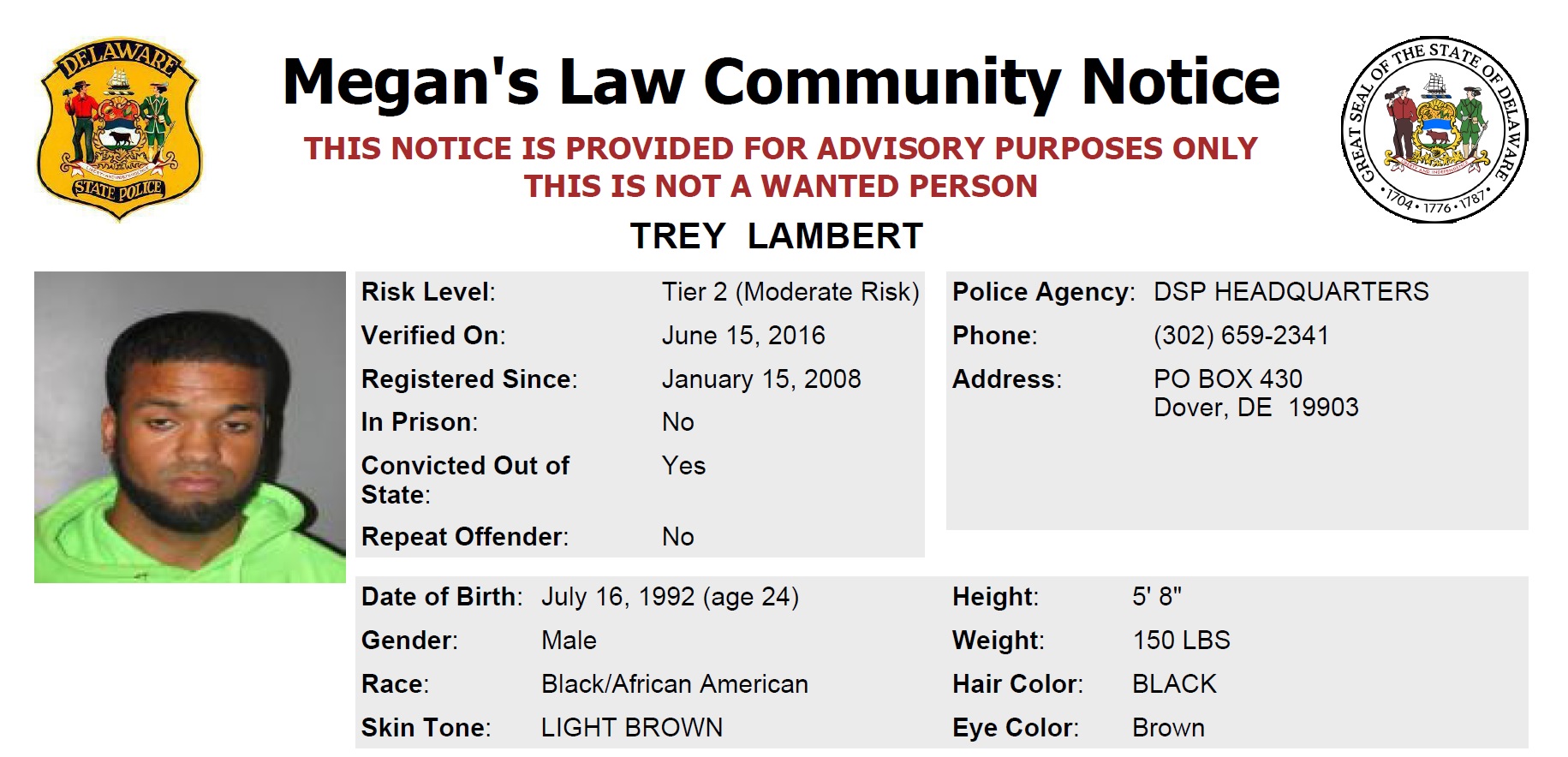 Dover–The following are not wanted. This is a Homeless Sex Offender Public Notification. If you have information about these subjects occupying a residence, please call 302-672-5306. Information may also be provided by calling Delaware Crime Stoppers at 1-800-TIP-3333, via the internet at http://www.delaware.crimestoppersweb.com or by sending an anonymous tip by text to 274637 (CRIMES) using the keyword “DSP.”