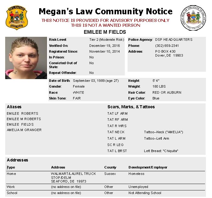 DoverThe following are not wanted.   This is a Homeless Sex Offender Public Notification.  If you have information that any of the listed subjects are occupying a residence, please call 302-672-5306.  Information may also be provided by calling Delaware Crime Stoppers at 1-800-TIP-3333, via the internet at http://www.delaware.crimestoppersweb.com or by sending an anonymous tip by text to 274637 (CRIMES) using the keyword “DSP.”