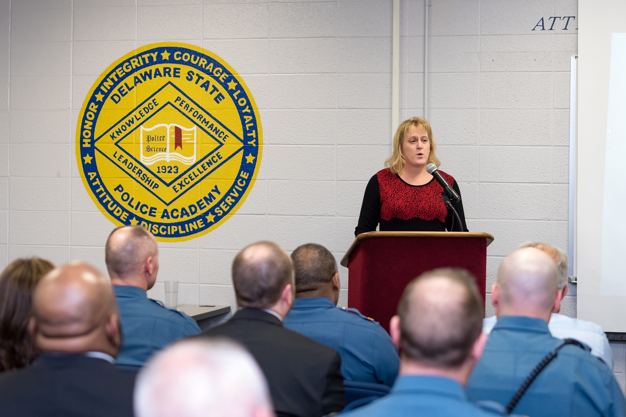 Led by our Superintendent, Colonel Nathaniel McQueen Jr., The Delaware State Police held a ceremony which recognized both the outgoing Honorary Commanders for 2016 and welcomed the newly selected Honorary Commanders for 2017. This prestigious event occurred on Tuesday, January 24, 2017 at the Delaware State Police Academy located at 1453 North DuPont Highway, Dover De. 19901. The Secretary of the Delaware Department of Safety and Homeland Security, James N. Mosley and the Superintendent of the Delaware State Police, Colonel Nathaniel McQueen Jr. spoke at the event and helped recognize the importance of the ceremony.