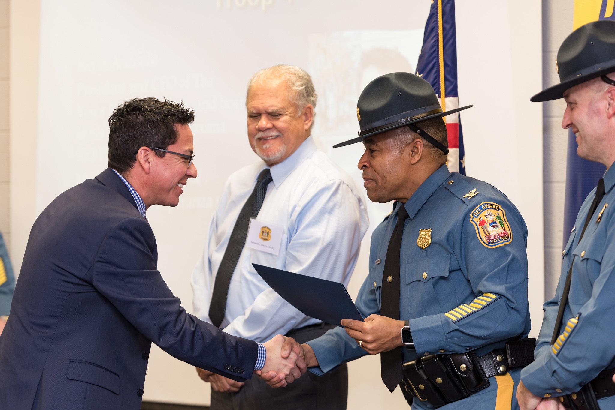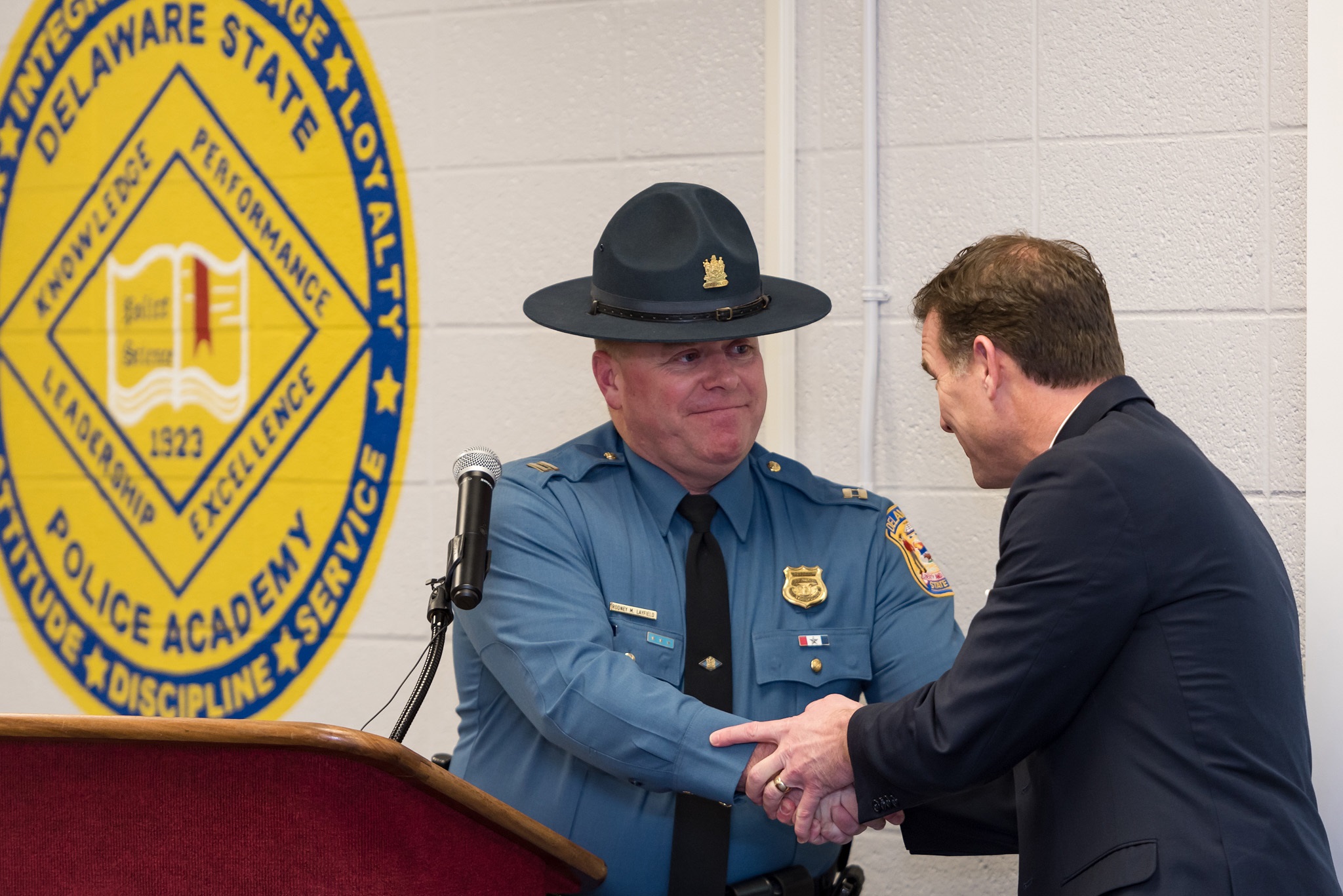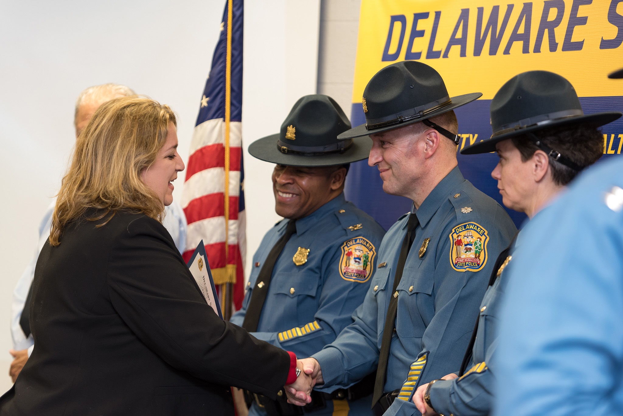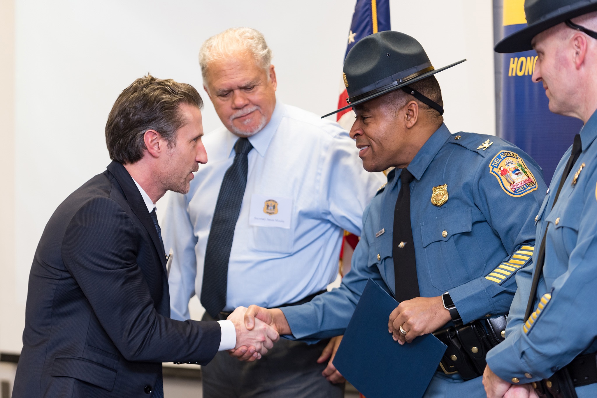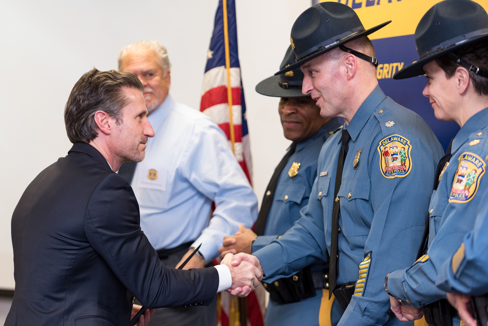 The Honorary Commander Program partners Delaware State Police Commanders with key business, political and community leaders ideally within the Commander’s troop area in order to foster a mutually beneficial partnership. The program encourages the exchange of ideas, different experiences and an understanding of each other’s role in the community. The program offers members of the community a chance to experience and better understand aspects of law enforcement. This partnership enhances the mutual benefit of building and strengthening the bond between the Division and the communities we serve. It also aims to increase the Division’s involvement in civic endeavors and organizations while integrating members of the local community into the Delaware State Police family.