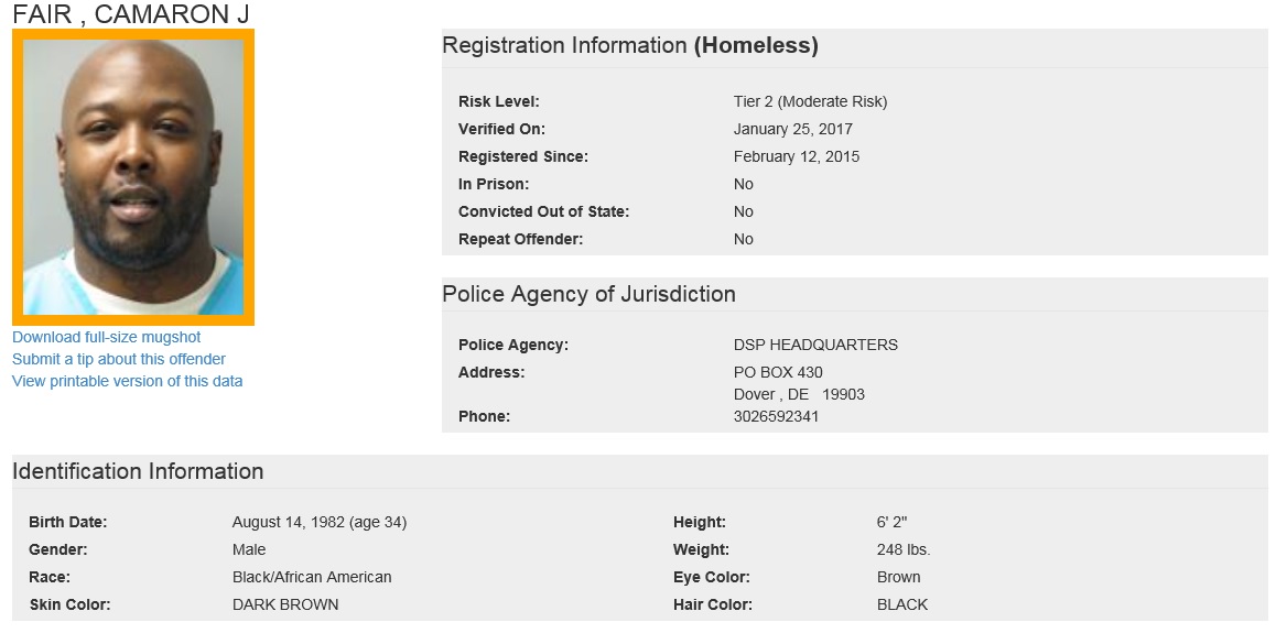 DoverThe following are not wanted.   This is a Homeless Sex Offender Public Notification.  If you have information that any of the listed subjects are occupying a residence, please call 302-672-5306.  Information may also be provided by calling Delaware Crime Stoppers at 1-800-TIP-3333, via the internet at http://www.delaware.crimestoppersweb.com or by sending an anonymous tip by text to 274637 (CRIMES) using the keyword “DSP.”