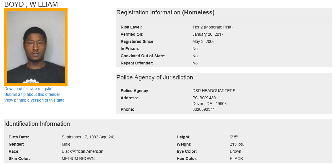 Dover– The following are not wanted. This is a Homeless Sex Offender Public Notification. If you have information that any of the listed subjects are occupying a residence, please call 302-672-5306. Information may also be provided by calling Delaware Crime Stoppers at 1-800-TIP-3333, via the internet at http://www.delaware.crimestoppersweb.com or by sending an anonymous tip by text to 274637 (CRIMES) using the keyword “DSP.”