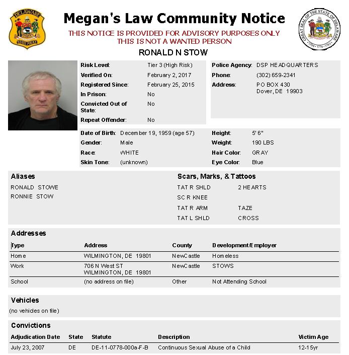 Homeless Sex Offender Notification