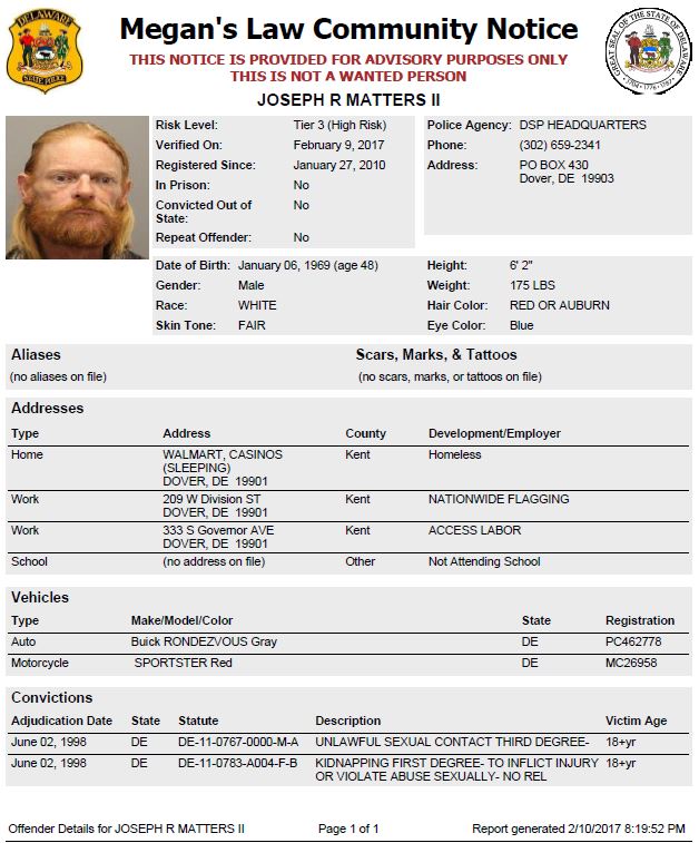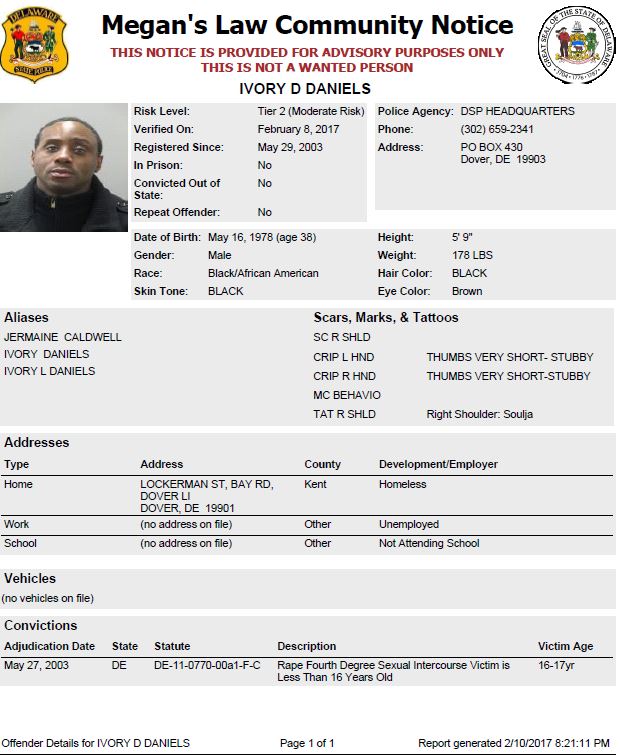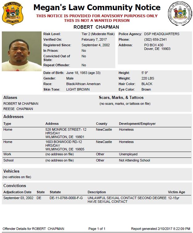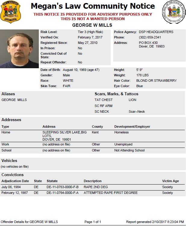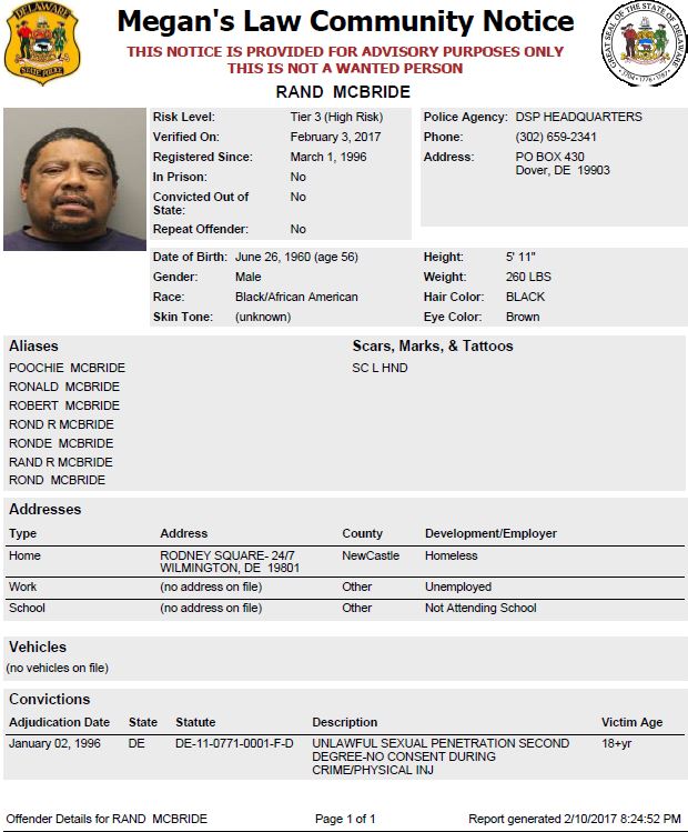 Dover– The following are not wanted. This is a Homeless Sex Offender Public Notification. If you have information that any of the listed subjects are occupying a residence, please call 302-672-5306. Information may also be provided by calling Delaware Crime Stoppers at 1-800-TIP-3333, via the internet at http://www.delaware.crimestoppersweb.com or by sending an anonymous tip by text to 274637 (CRIMES) using the keyword “DSP.”