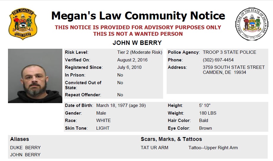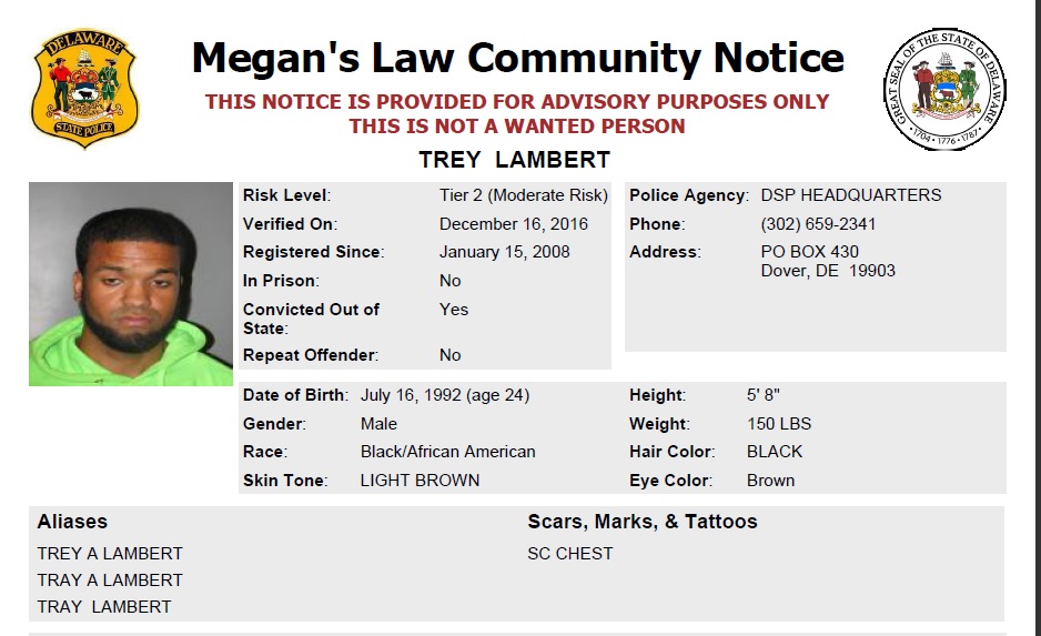 Dover, DE- The Delaware State Police Sex Offender Apprehension and Registration Unit (S.O.A.R) is currently looking for the following wanted sex offenders after they either failed to register, re-register, or verify their current address. If anyone knows the location of these subjects, they are asked to call 302-672-5306. Information may also be provided by calling Delaware Crime Stoppers at 1-800-TIP-3333, via the internet at www.delaware.crimestoppersweb.com, or by sending an anonymous tip by text to 274637 (CRIMES) using the keyword “DSP.”
