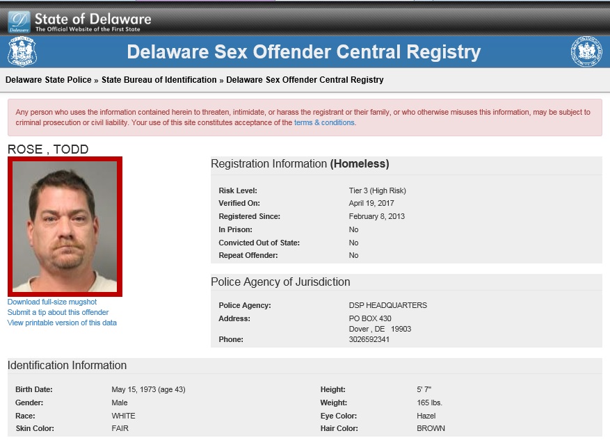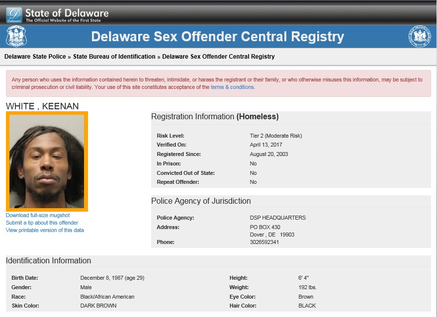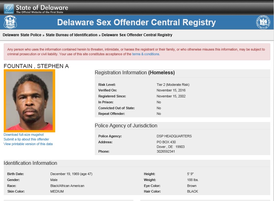 Dover– The following are not wanted. This is a Homeless Sex Offender Public Notification. If you have information that any of the listed subjects are occupying a residence, please call 302-672-5306. Information may also be provided by calling Delaware Crime Stoppers at 1-800-TIP-3333, via the internet at http://www.delaware.crimestoppersweb.com or by sending an anonymous tip by text to 274637 (CRIMES) using the keyword “DSP.”