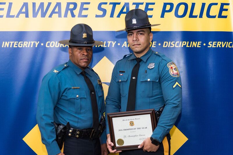 This year, ten Delaware State Troopers were nominated. The Executive Staff selected Trooper First Class Christopher Garcia from Troop 4 as the 2016 Trooper of the Year for his outstanding efforts and contributions to the Division and the citizens of Delaware.