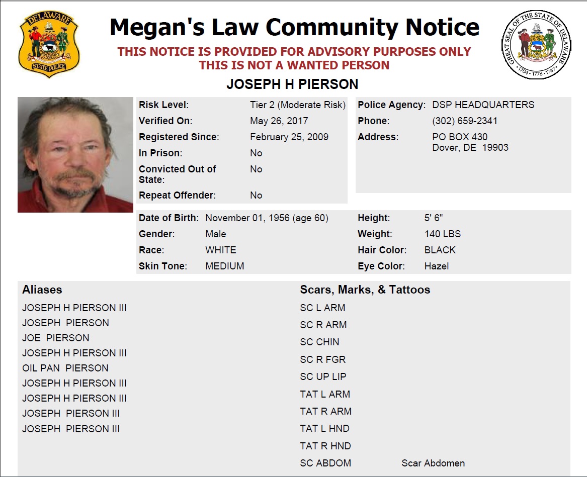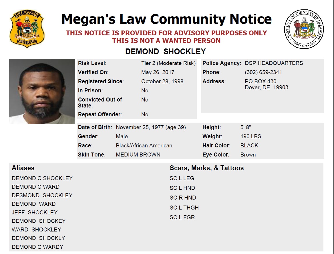 Dover– The following are not wanted. This is a Homeless Sex Offender Public Notification. If you have information that the listed subjects are occupying a residence, please call 302-672-5306. Information may also be provided by calling Delaware Crime Stoppers at 1-800-TIP-3333, via the internet at http://www.delaware.crimestoppersweb.com or by sending an anonymous tip by text to 274637 (CRIMES) using the keyword “DSP.”