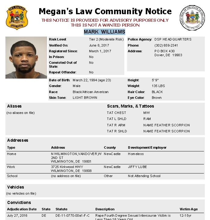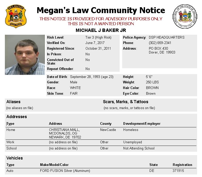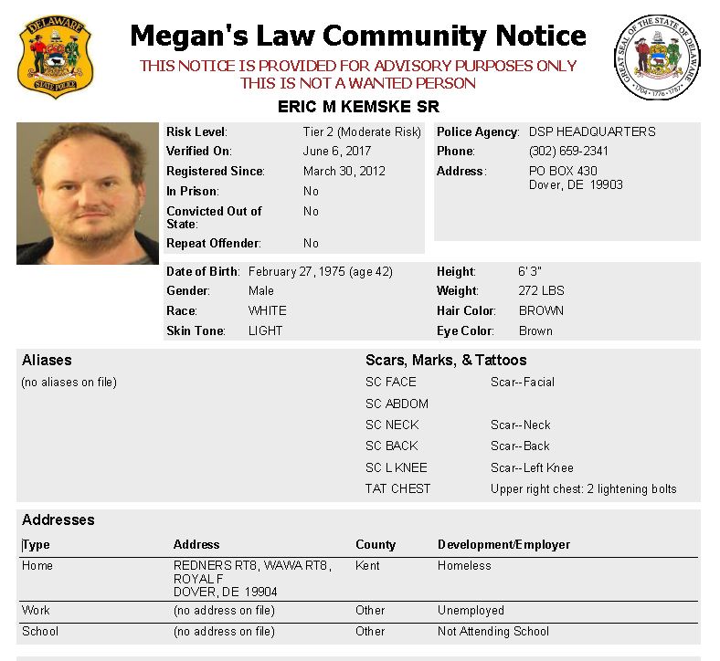 Dover– The following are not wanted. This is a Homeless Sex Offender Public Notification. If you have information that any of the listed subjects are occupying a residence, please call 302-672-5306. Information may also be provided by calling Delaware Crime Stoppers at 1-800-TIP-3333, via the internet at http://www.delaware.crimestoppersweb.com or by sending an anonymous tip by text to 274637 (CRIMES) using the keyword “DSP.”