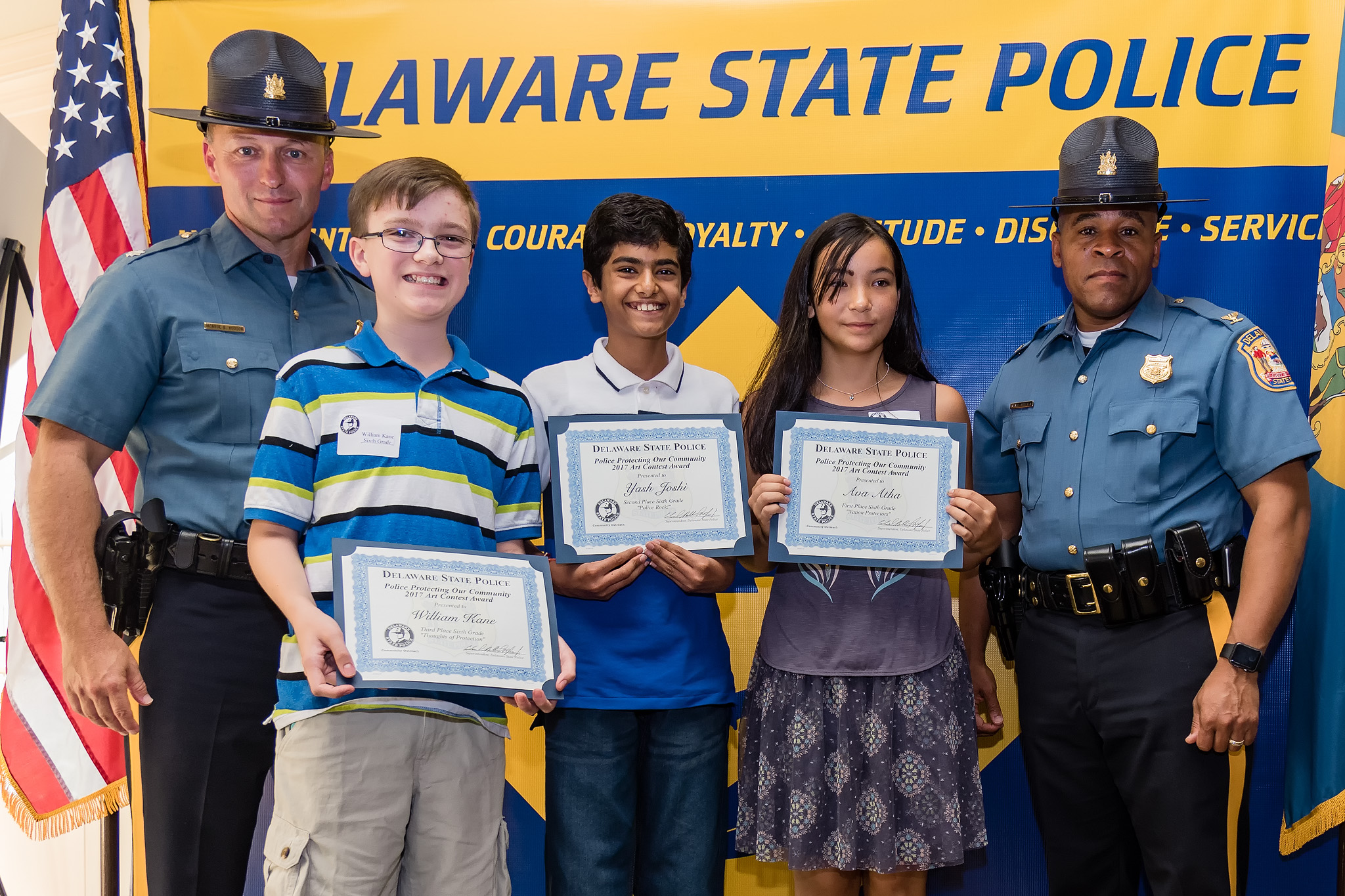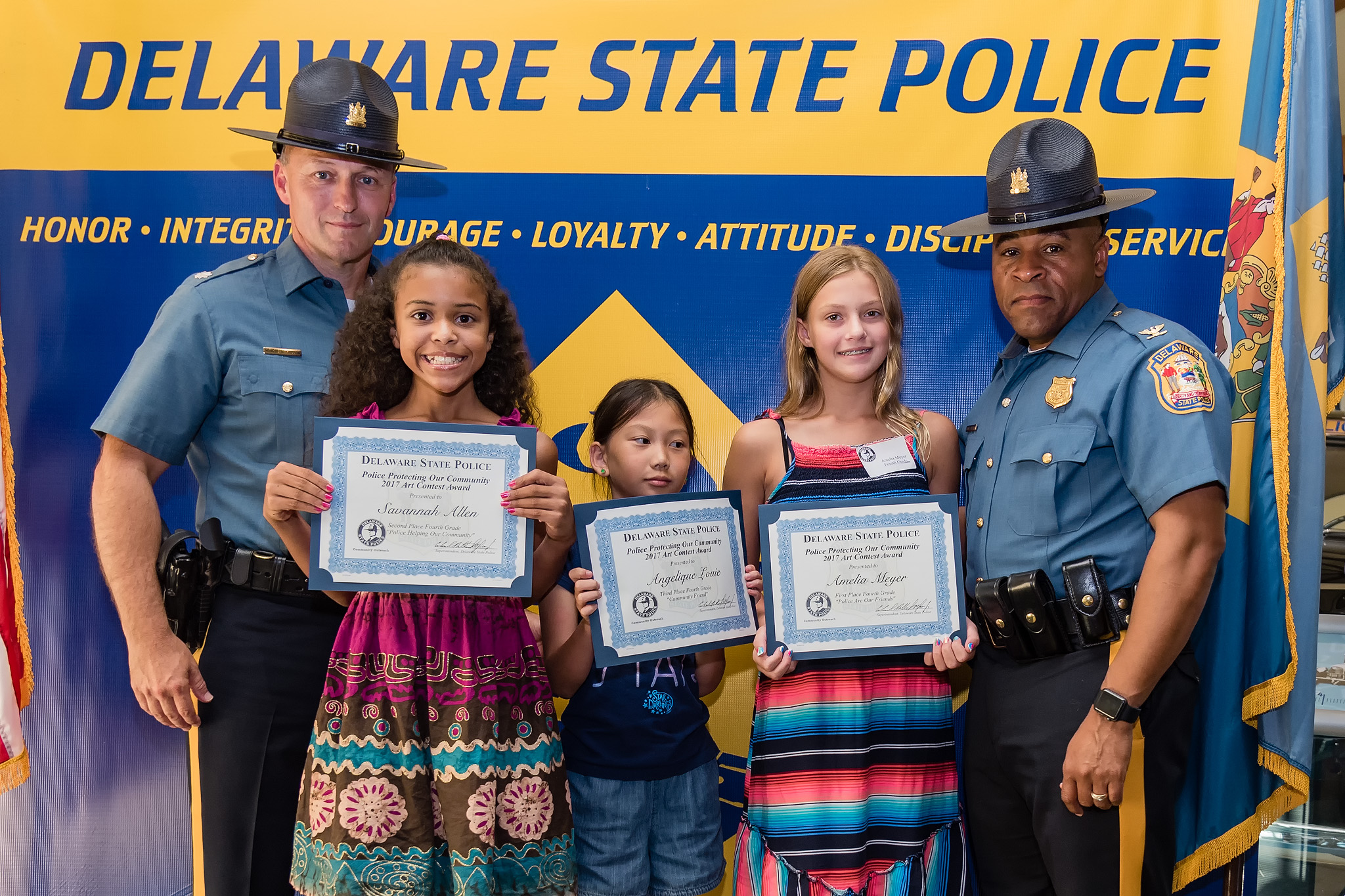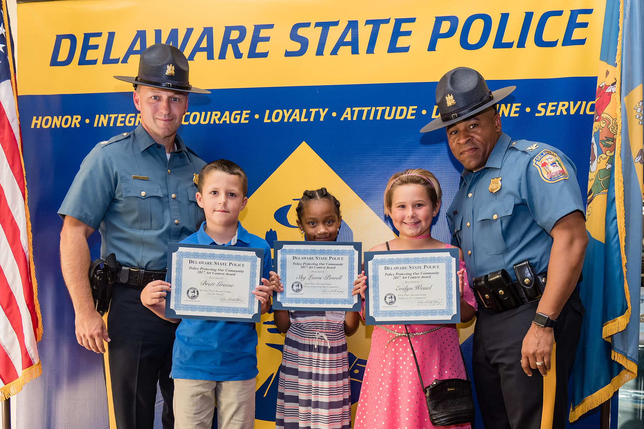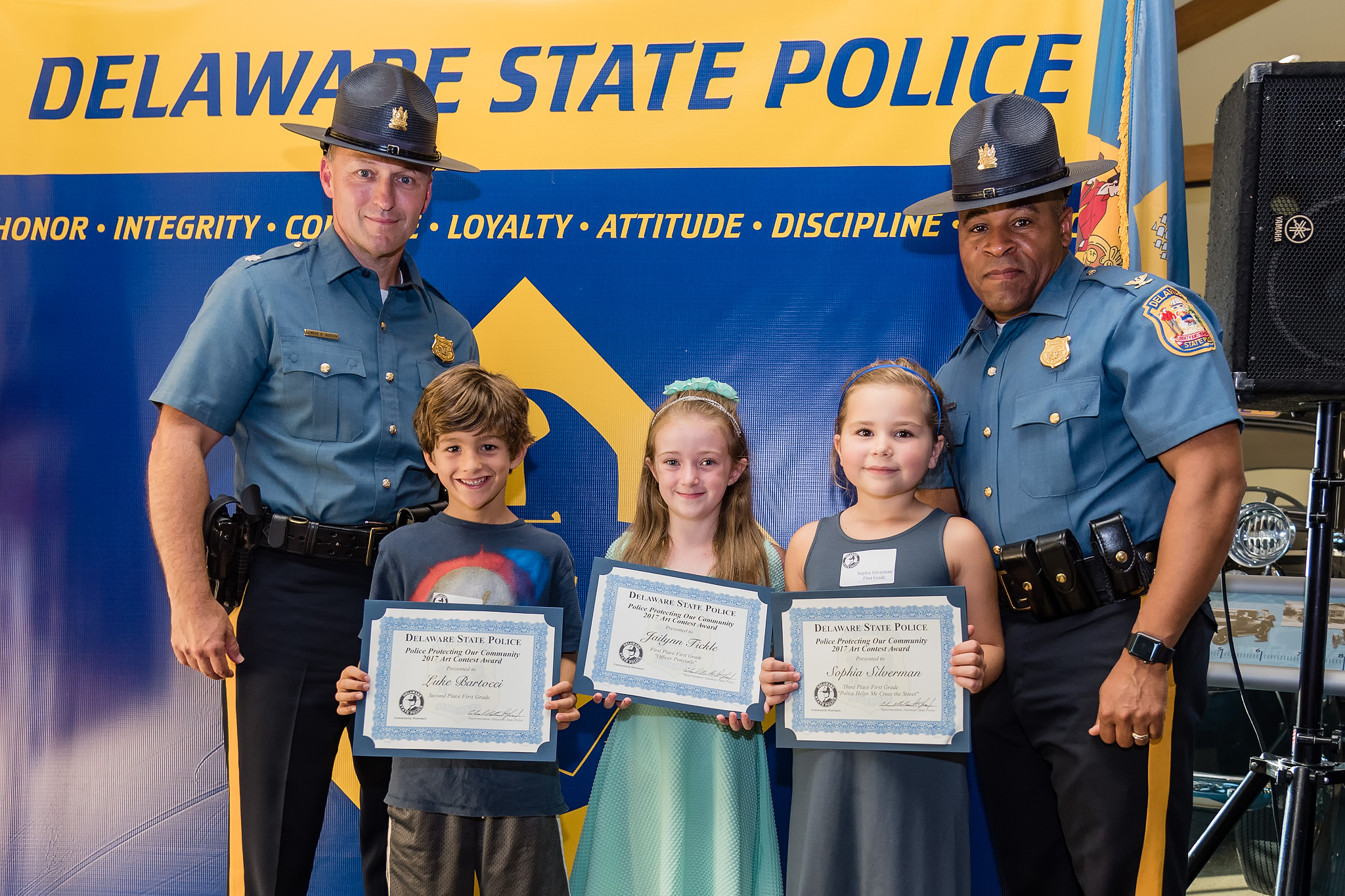 The Delaware State Police celebrated the winners of the 2017 Delaware State Police Community Outreach Art Contest at an award ceremony on Wednesday August 9, 2017 at the Delaware State Police Museum in Dover. Students from schools throughout the State participated in this very neat art contest from Kindergarten through Sixth Grade.