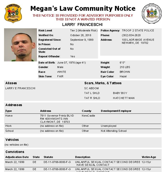 Dover, DE- The Delaware State Police Sex Offender Apprehension and Registration Unit (S.O.A.R) is currently looking for the following wanted sex offenders after they either failed to register or re-register their current address. If anyone knows the location of these subjects, they are asked to call 302-672-5306. Information may also be provided by calling Delaware Crime Stoppers at 1-800-TIP-3333, via the internet at www.delaware.crimestoppersweb.com.