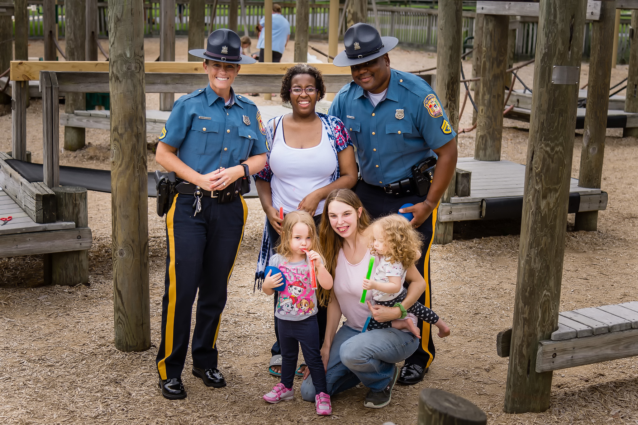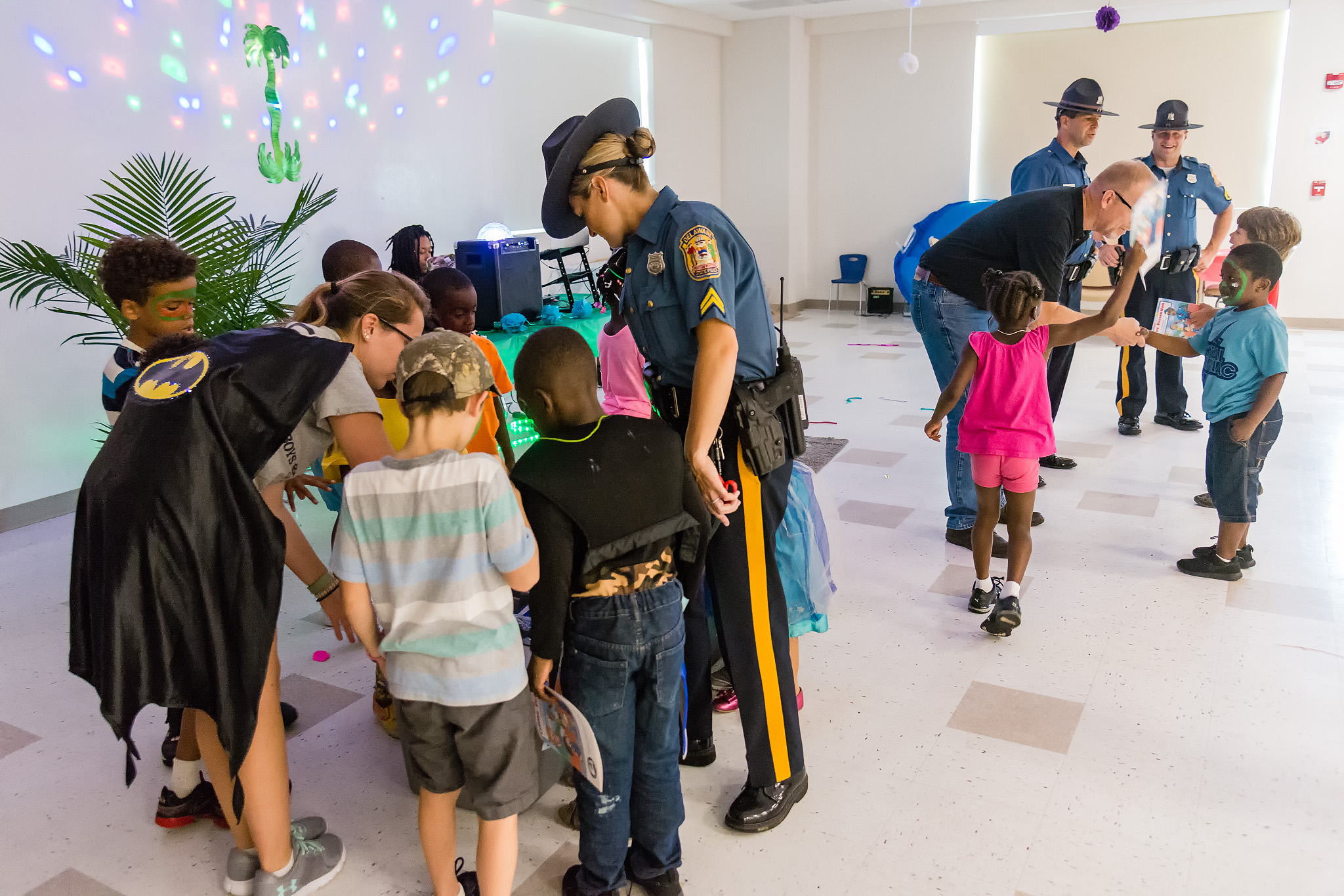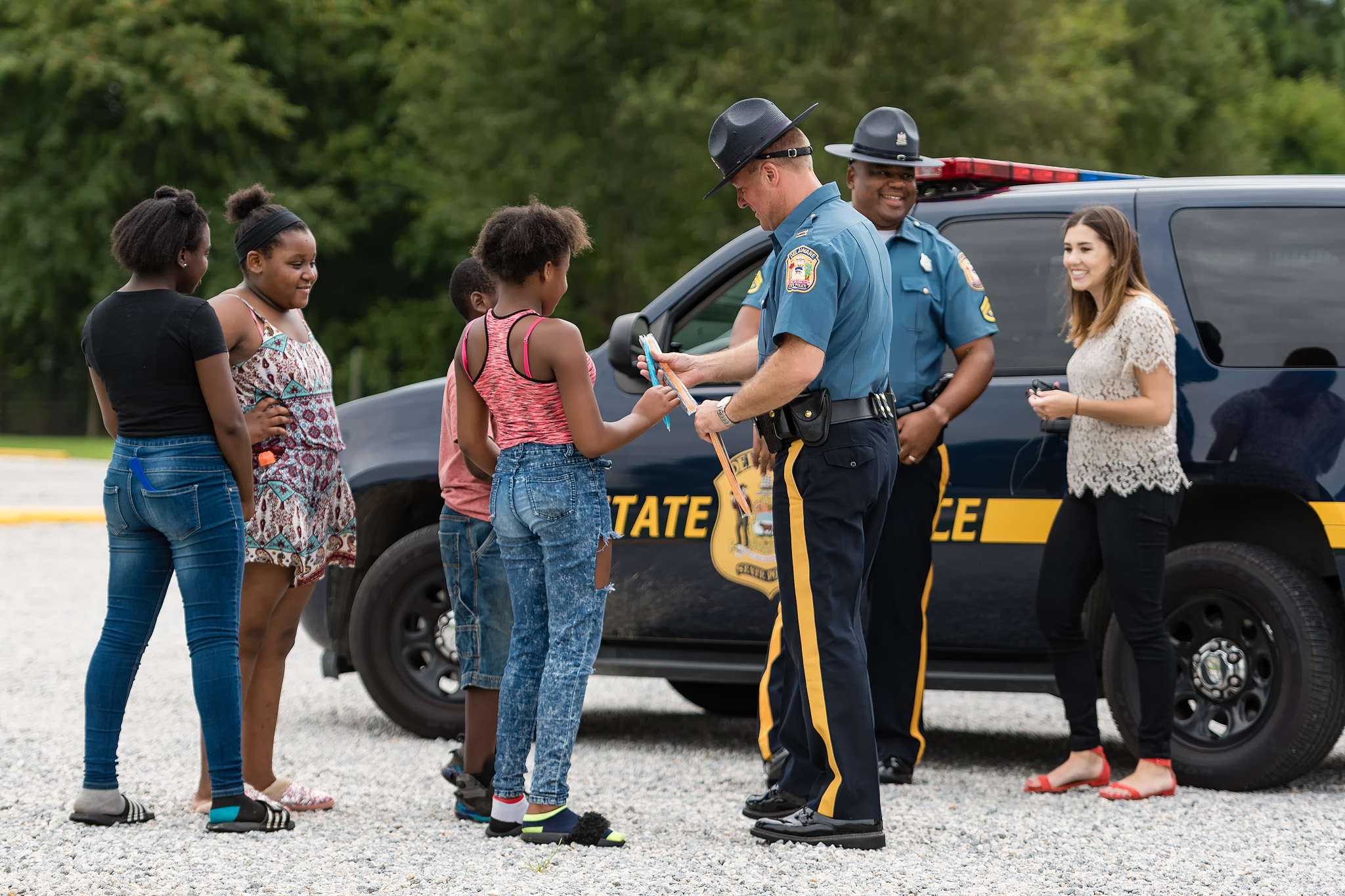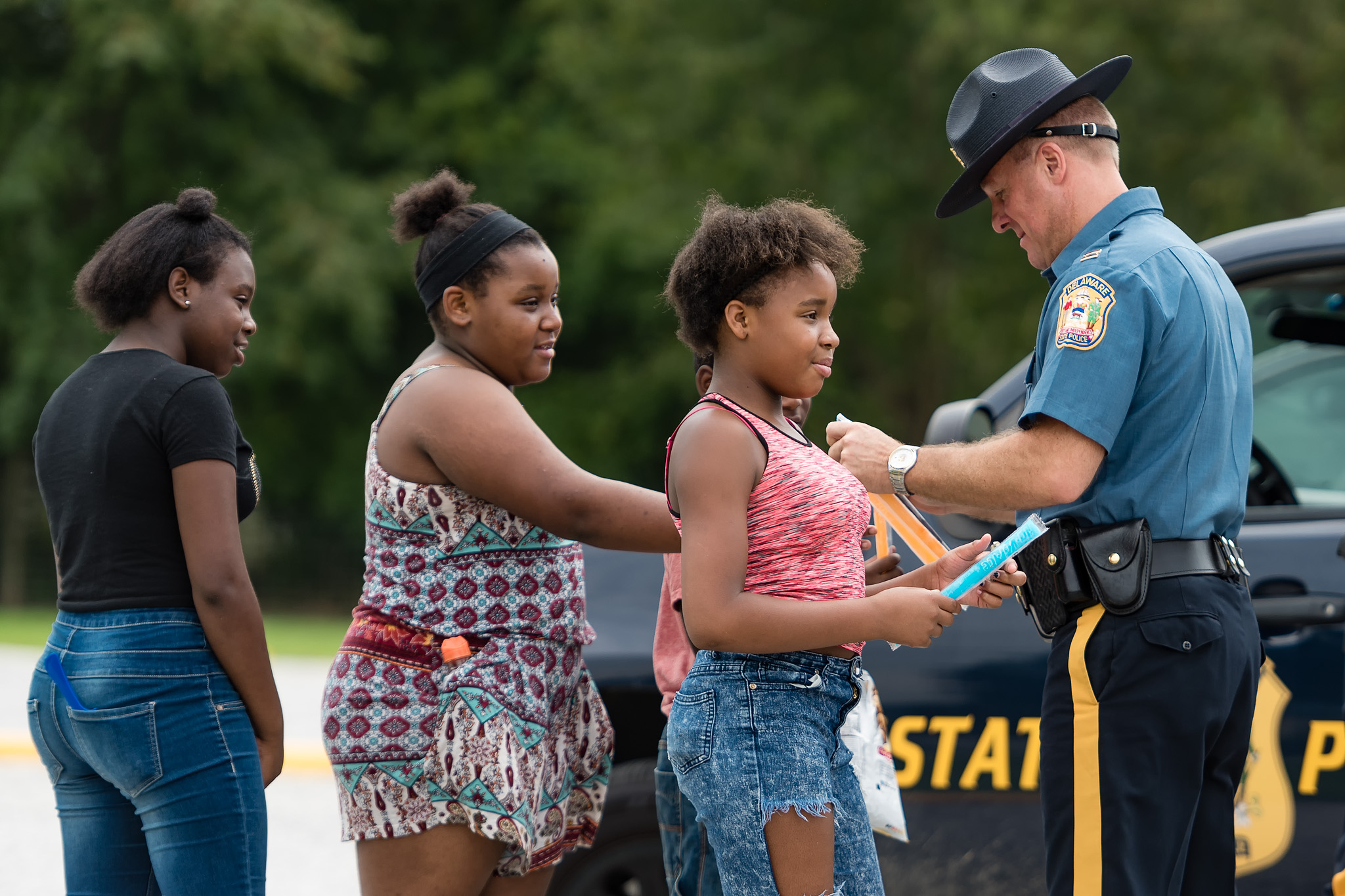 In addition, visits were made to Brecknock Park and the Boys & Girls Club of Delaware. Hundreds of children were contacted and they had an opportunity to interact and socialize with the Troopers. Freeze pops, coloring books, miniature footballs and basketballs were handed out and were a huge hit with the children. Every child and adult contacted was very welcoming and appreciative of the effort the Delaware State Police was putting into making a positive impact in the community.