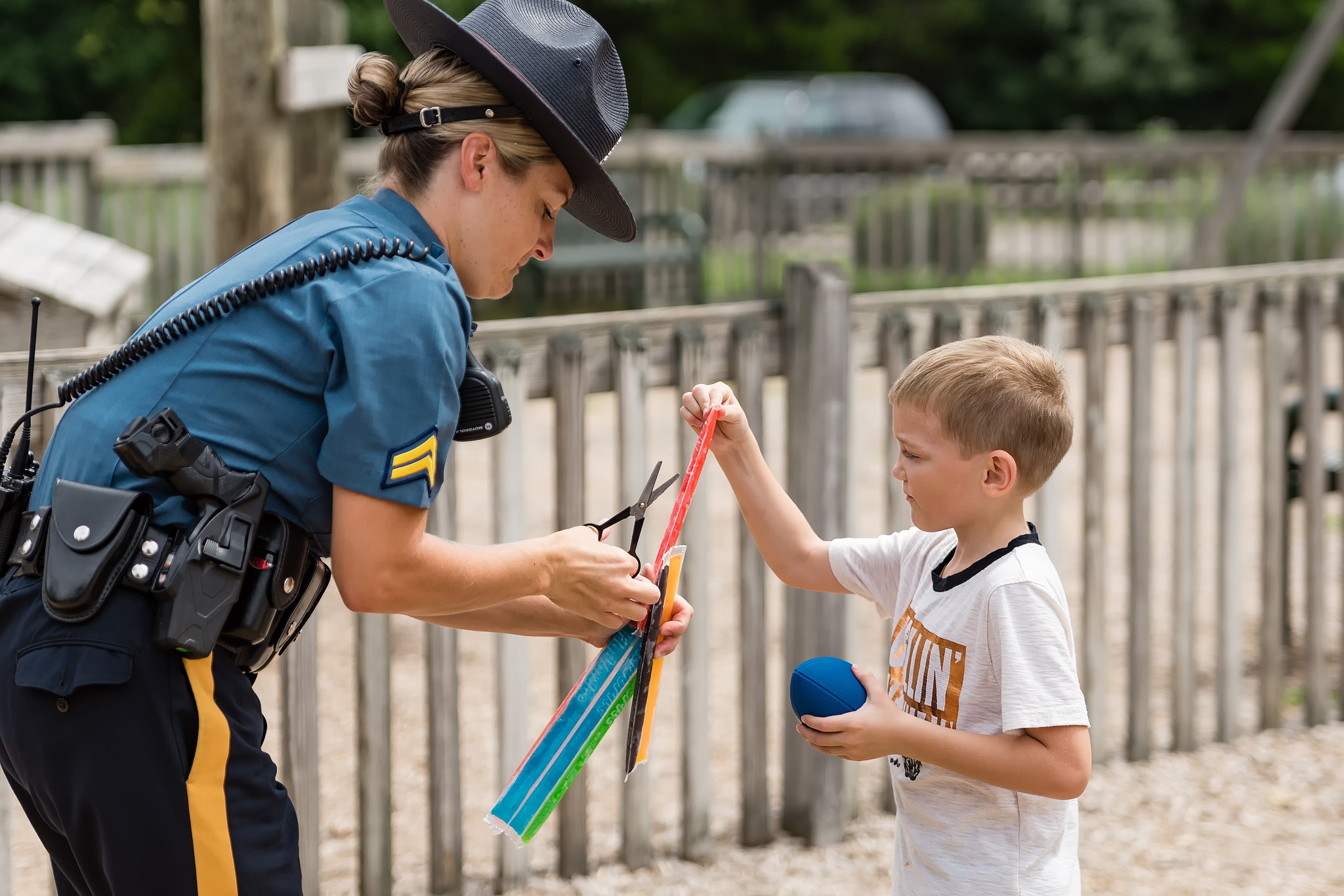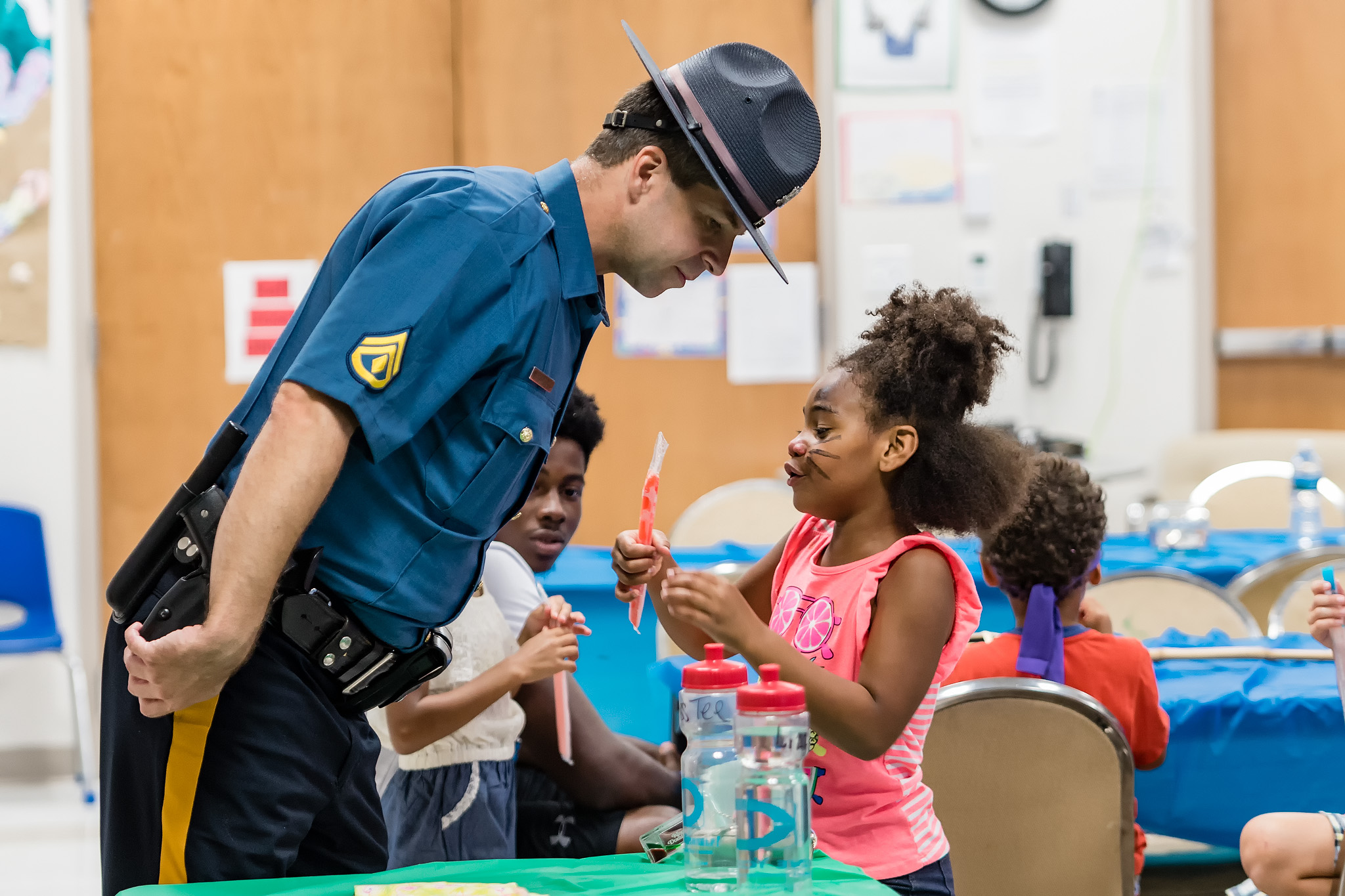 “I was thrilled to be a part of the back to school initiative. The children were so excited. They loved the freeze pops and interacting with us! It was a very positive day and experience” said, Corporal/1 Heather Imhof, Community Outreach Representative