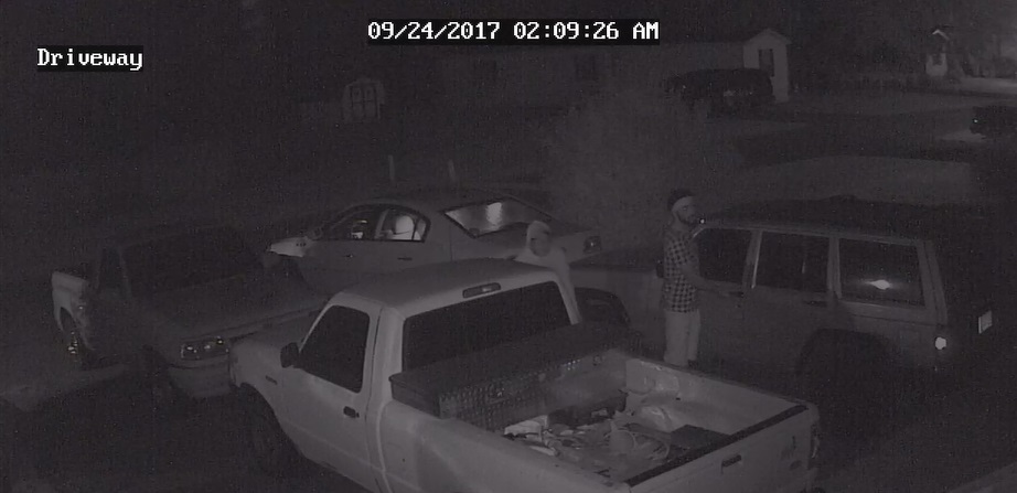 This incidents occurred around 2:00 a.m. Sunday September 24, 2017 when two individuals, depicted in the surveillance photos, were observed entering or attempting to enter vehicles parked in driveways along Leah Street, Fish Hook MHP. The suspects removed a wallet from one of the numerous vehicles before fleeing the area.