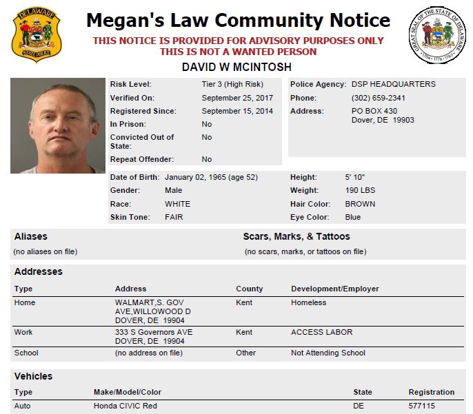 Homeless Sex Offender Notification