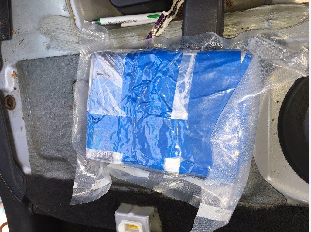 Based on the K-9’s positive response a more detailed search of the vehicle was conducted by members of the Delaware State Police Drug Unit, with assistance from the DEA . The search produced a package which was concealed in a hidden compartment in the front passenger seat of the Aveo. The package contained approximately 1.2 kilograms of cocaine which has a street value of approximately $30,000.
