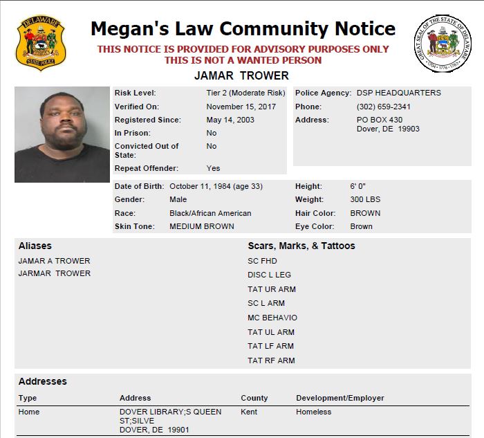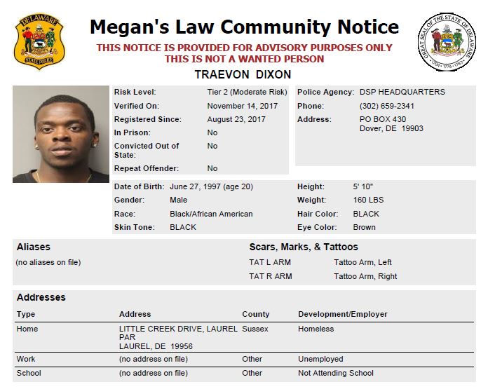 Dover– The following are not wanted. This is a Homeless Sex Offender Public Notification. If you have information that any of the listed subjects are occupying a residence, please call 302-672-5306. Information may also be provided by calling Delaware Crime Stoppers at 1-800-TIP-3333, via the internet at http://www.delaware.crimestoppersweb.com.