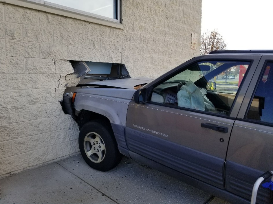The incident occurred at approximately 9:51 a.m., Friday, December 1, 2017, at the Walgreens drug store located at 1500 Beaverbrook Plaza, New Castle. Joyce Ann Jones, 65, of New Castle, was operating a 1997 Jeep Grand Cherokee, and was pulling into a parking space at the front of the store, when for an unknown reason, she failed to brake and continued forward, striking the front wall of the building.