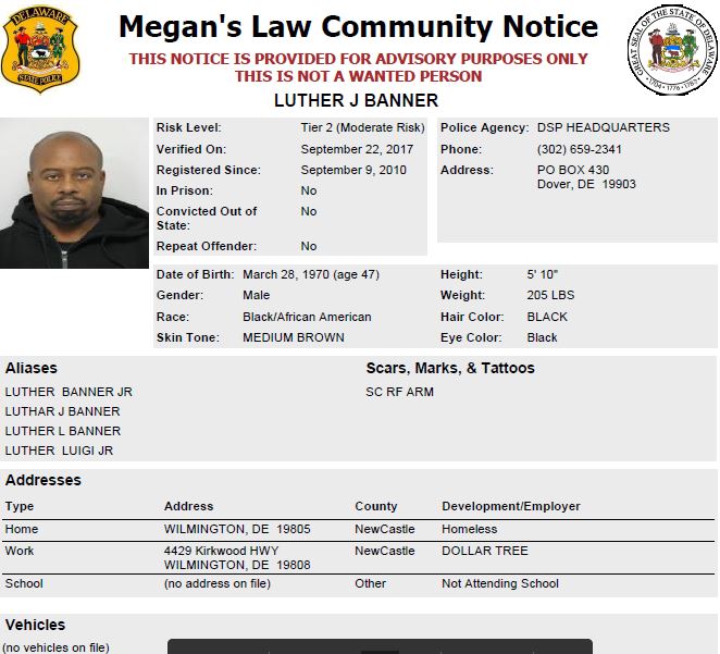 Dover, DE- The Delaware State Police Sex Offender Apprehension and Registration Unit (S.O.A.R) is currently looking for the following wanted sex offenders after they either failed to register or re-register their current address. If anyone knows the location of these subjects, they are asked to call 302-672-5306. Information may also be provided by calling Delaware Crime Stoppers at 1-800-TIP-3333, via the http://www.delaware.crimestoppersweb.com/