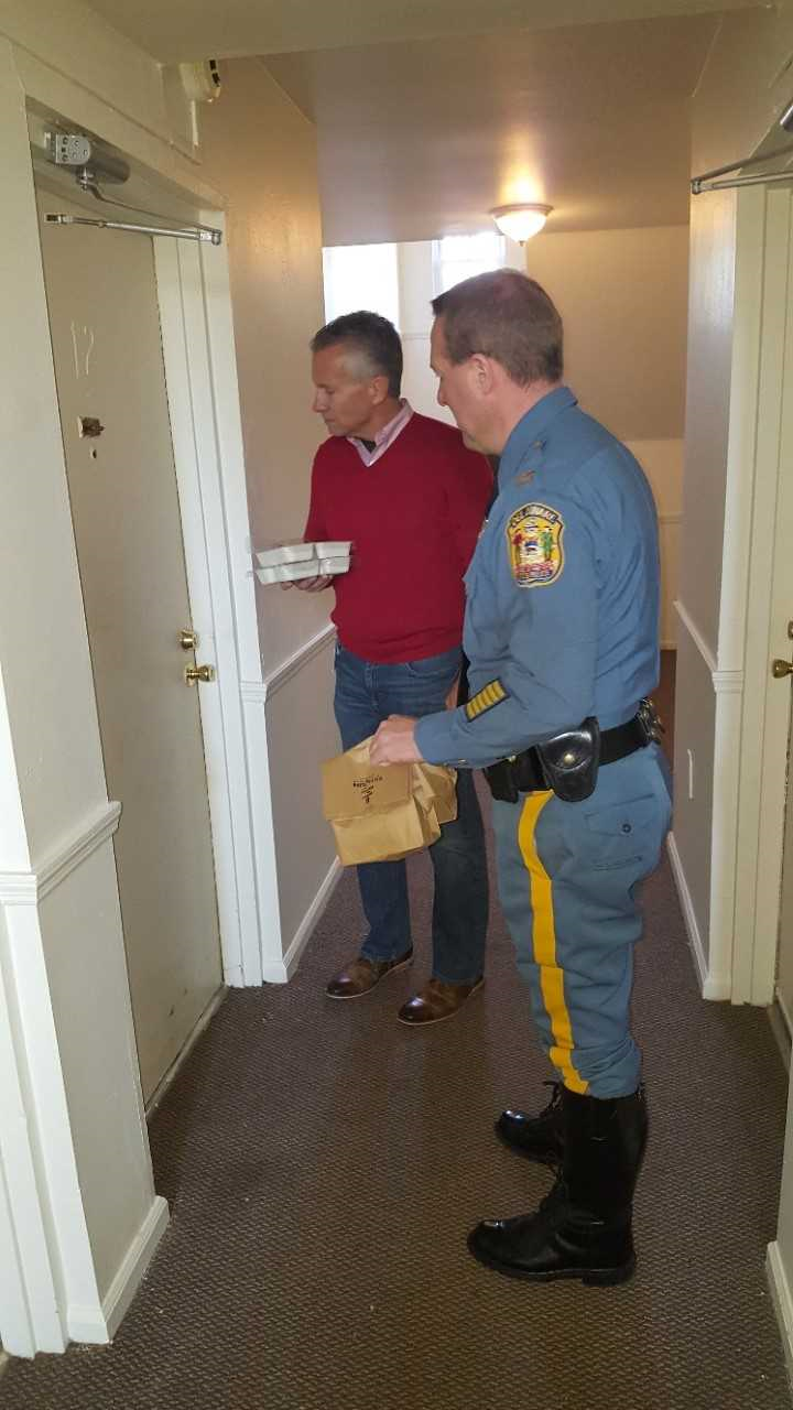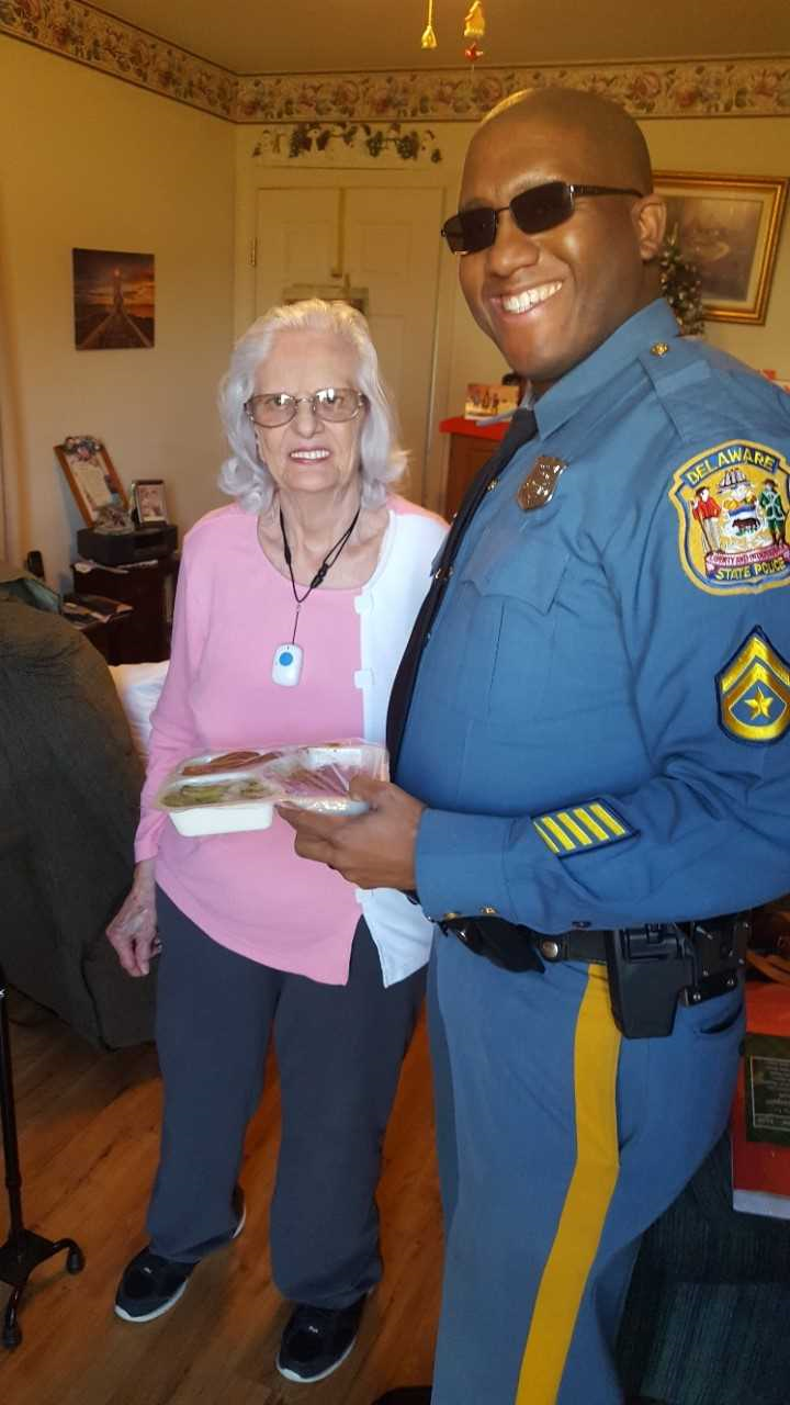 Kent County– On Monday, December 18, 2017, Delaware State Troopers assigned to Troop 3 and the Community Outreach Unit helped spread holiday cheer by partnering with Delaware Meals on Wheels. Captain Joshua Bushweller along with State Representative Lyndon Yearick , and Troopers helped deliver 170 hot meals to individuals in need. The deliveries were made in areas including; Kent Acres, Kentwood Mobile Home Park, Meadowbrook Acres, Paris Villa, Mifflin Meadows, Alder Park, Rodney Village, and Little Creek/Leipsic area. The initiative allowed for positive interactions and a chance for the Delaware State Police to give back to the communities they serve. The event was well received and many individuals were extremely thankful for the State Police taking time to deliver them a warm meal.