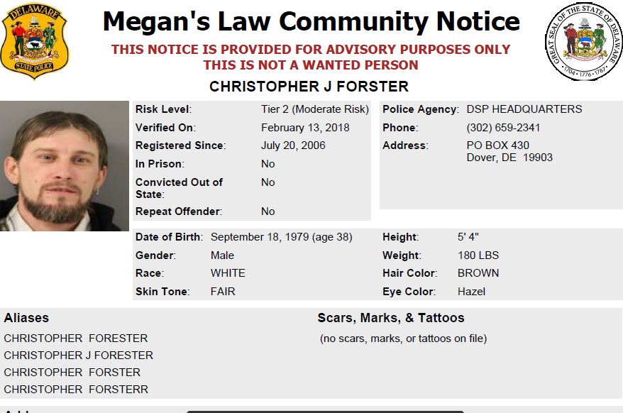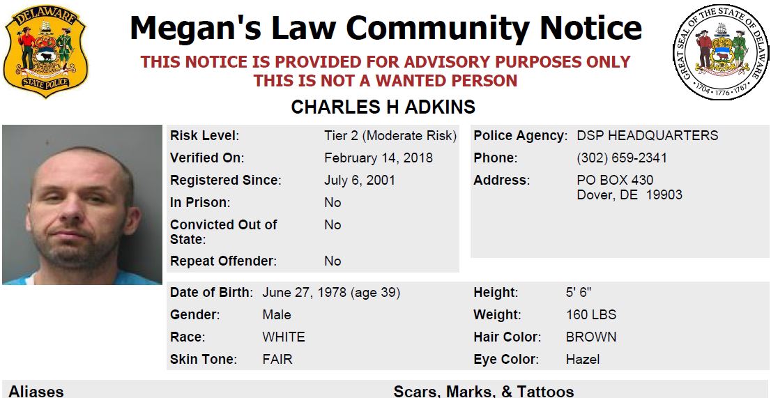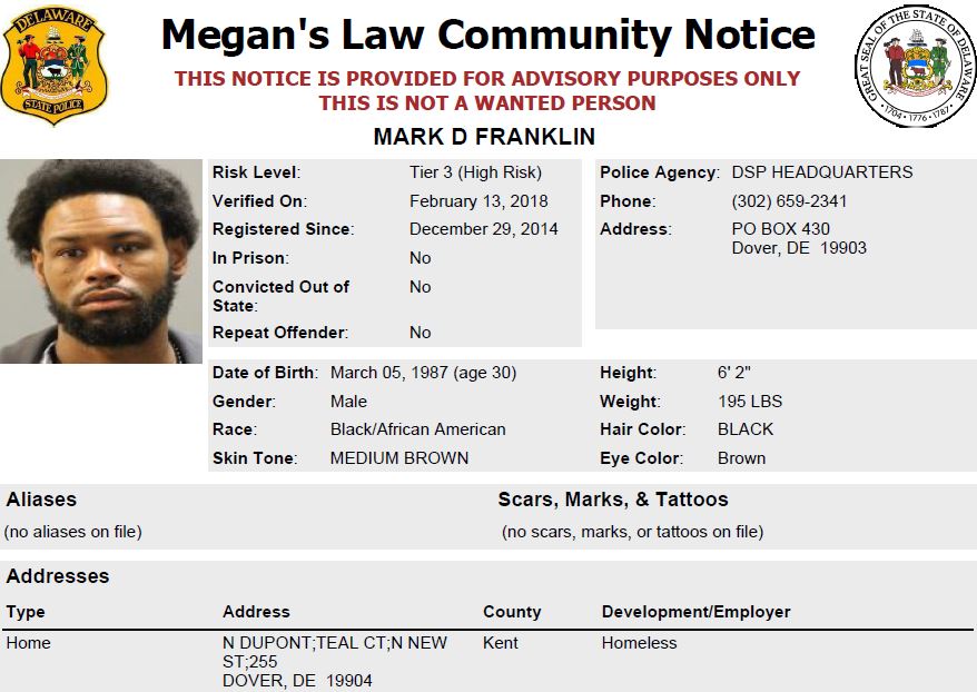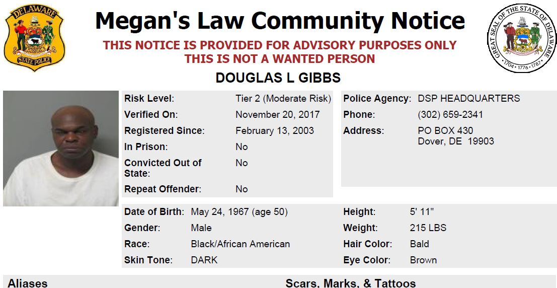 Dover– The following are not wanted. This is a Homeless Sex Offender Public Notification. If you have information that any of the listed subjects are occupying a residence, please call 302-672-5306. Information may also be provided by calling Delaware Crime Stoppers at 1-800-TIP-3333, via the internet at http://www.delaware.crimestoppersweb.com.