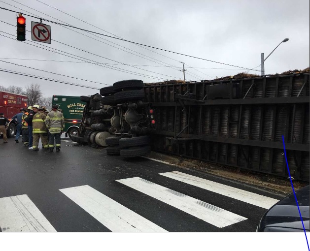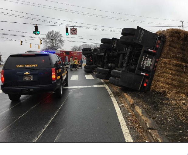 The crash occurred at approximately 12:05 p.m., Friday, February 23, 2018 and involves only the tractor trailer, which was fully loaded with hay. The operator and sole occupant of the vehicle was not injured as a result of the crash.
