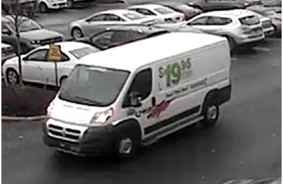 The suspect is described as a black male, wearing a dark colored baseball hat, dark colored sweatshirt, light blue jeans and dark sneakers. The U-Haul rental van which the suspect was operating, displayed stolen Maryland license plate 2AWA66.