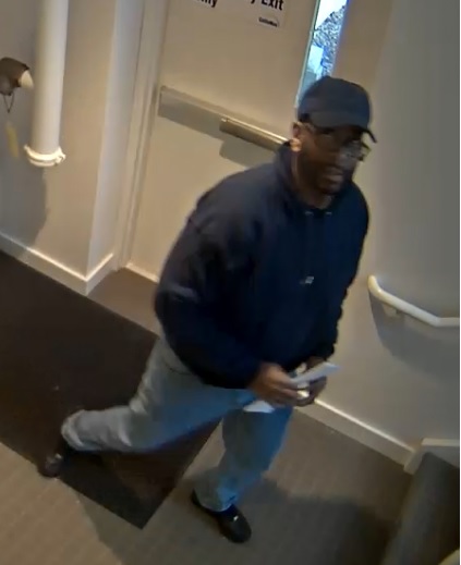 The incident occurred at approximately 3:41 p.m., Wednesday, January 30, 2018, at the Sallie Mae Corporation, located at 300 Continental Drive Newark. The above pictured suspect made forcible entry into the building before proceeding to a restricted area where employee’s personal belongings are kept. The suspect was then able to take possession of multiple personal credit cards before exiting the property undetected.