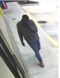The suspect (pictured above) was described as a black male, 5’11”-6’00” tall, with brown eyes and black hair, wearing a light colored sweater, jeans, and displaying a handgun.