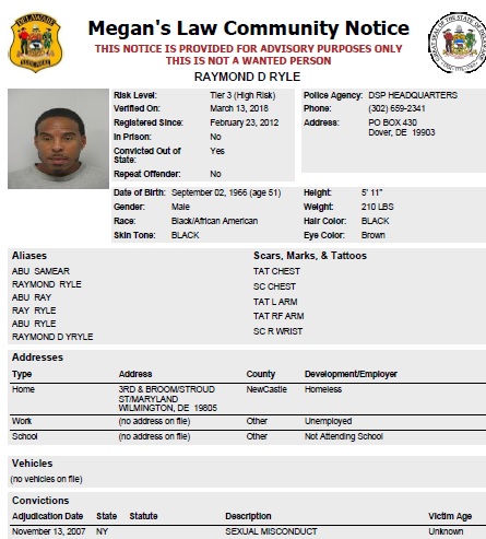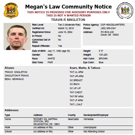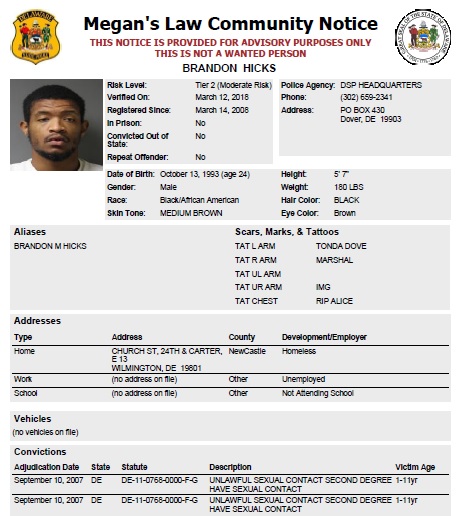 Dover– The following are not wanted. This is a Homeless Sex Offender Public Notification. If you have information that any of the below listed subjects are occupying a residence, please call 302-672-5306. Information may also be provided by calling Delaware Crime Stoppers at 1-800-TIP-3333, via the internet at http://www.delaware.crimestoppersweb.com.