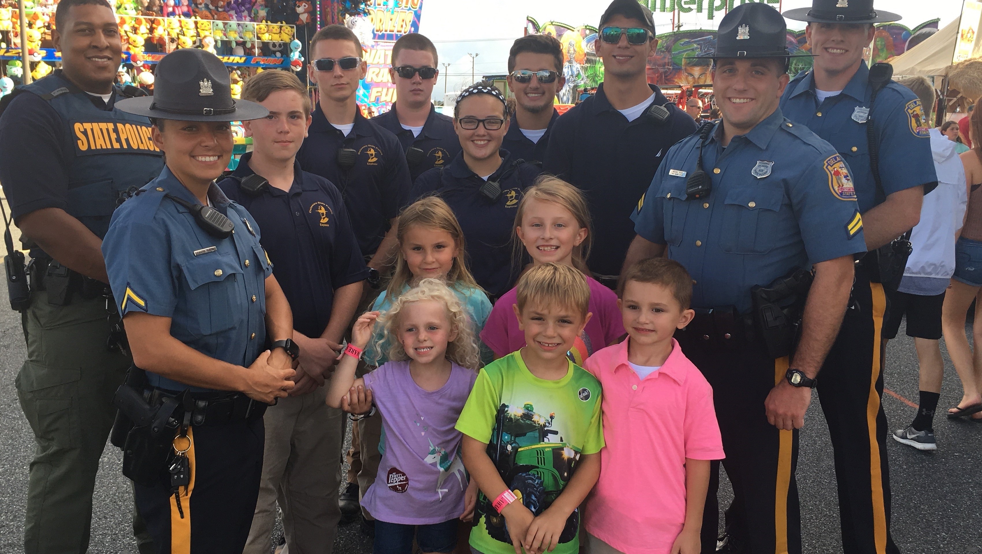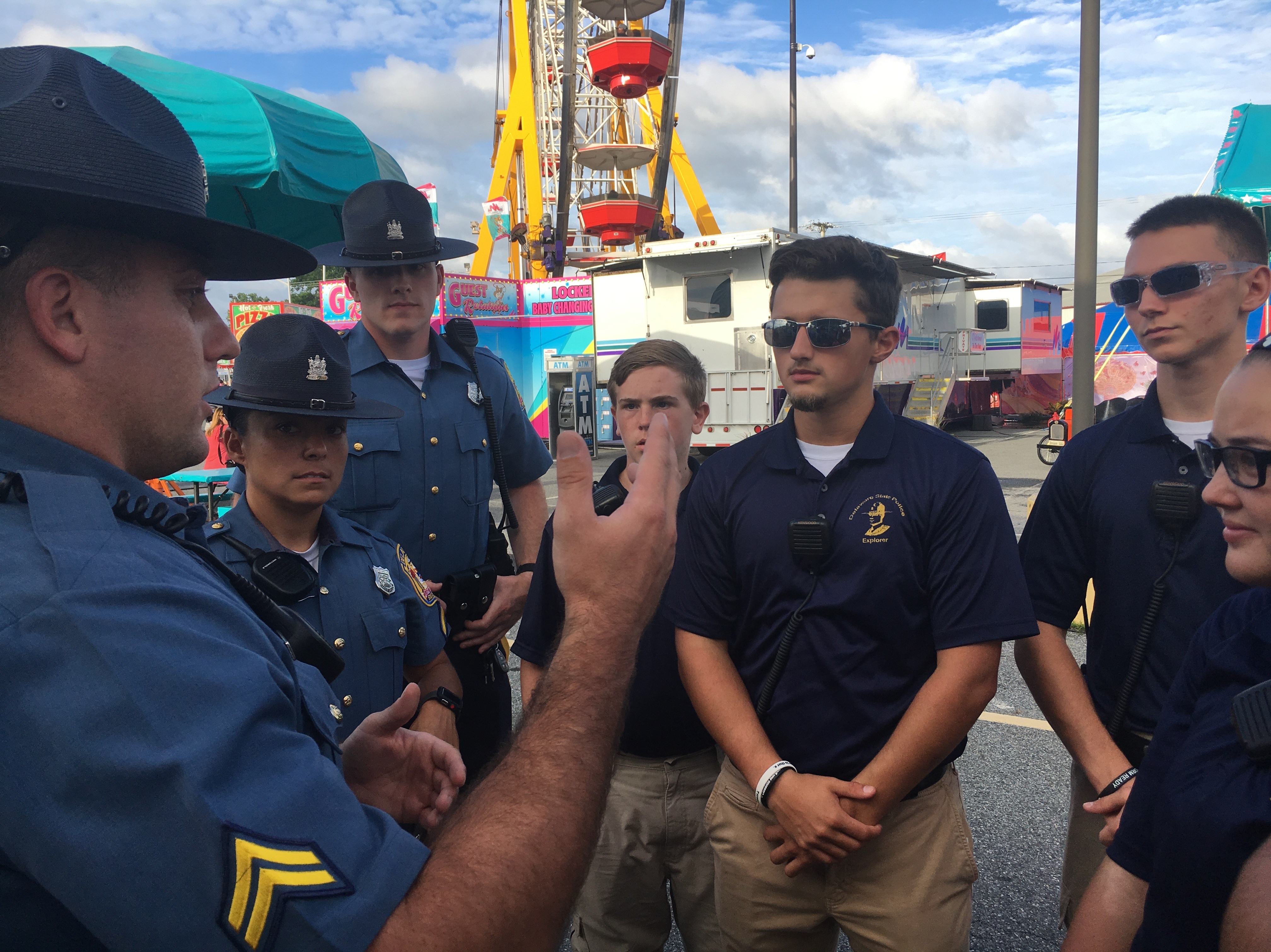 Since the 1990’s, the Delaware State Police have sponsored high school students as Explorers throughout the state. Explorers participate and assist in community service events like fingerprinting children, assisting missing children at the Delaware State Fair, participating in the Special Olympics Delaware 5k run and Polar Bear Plunge and provide additional security at different venues like Delaware’s Punkin’ Chunkin’.