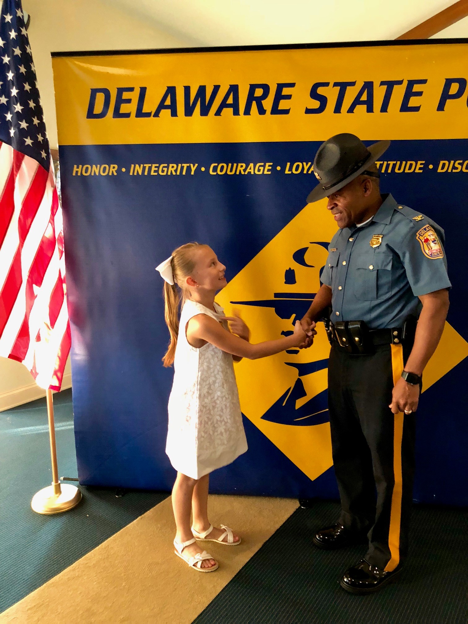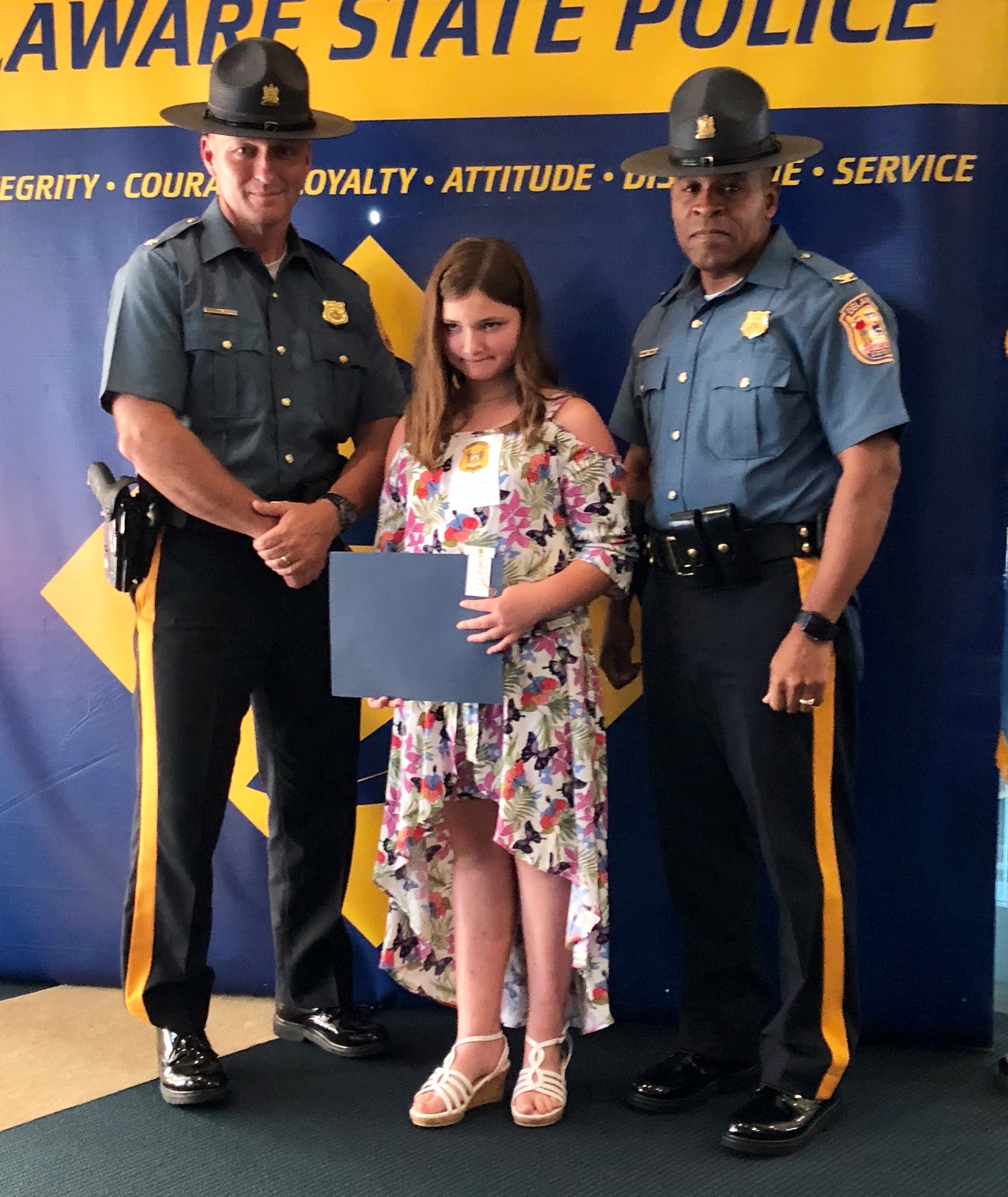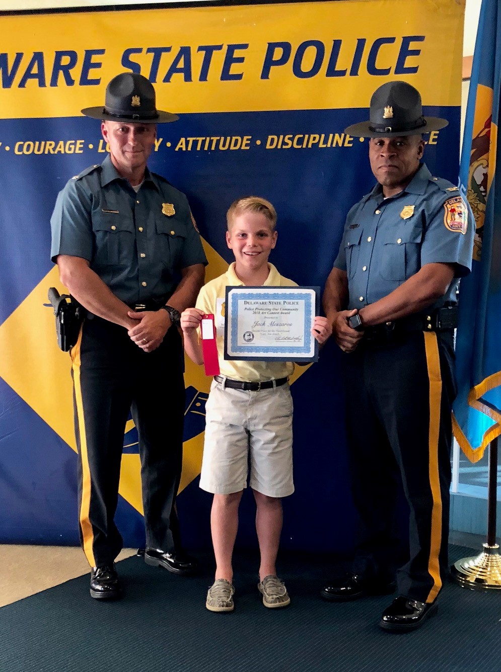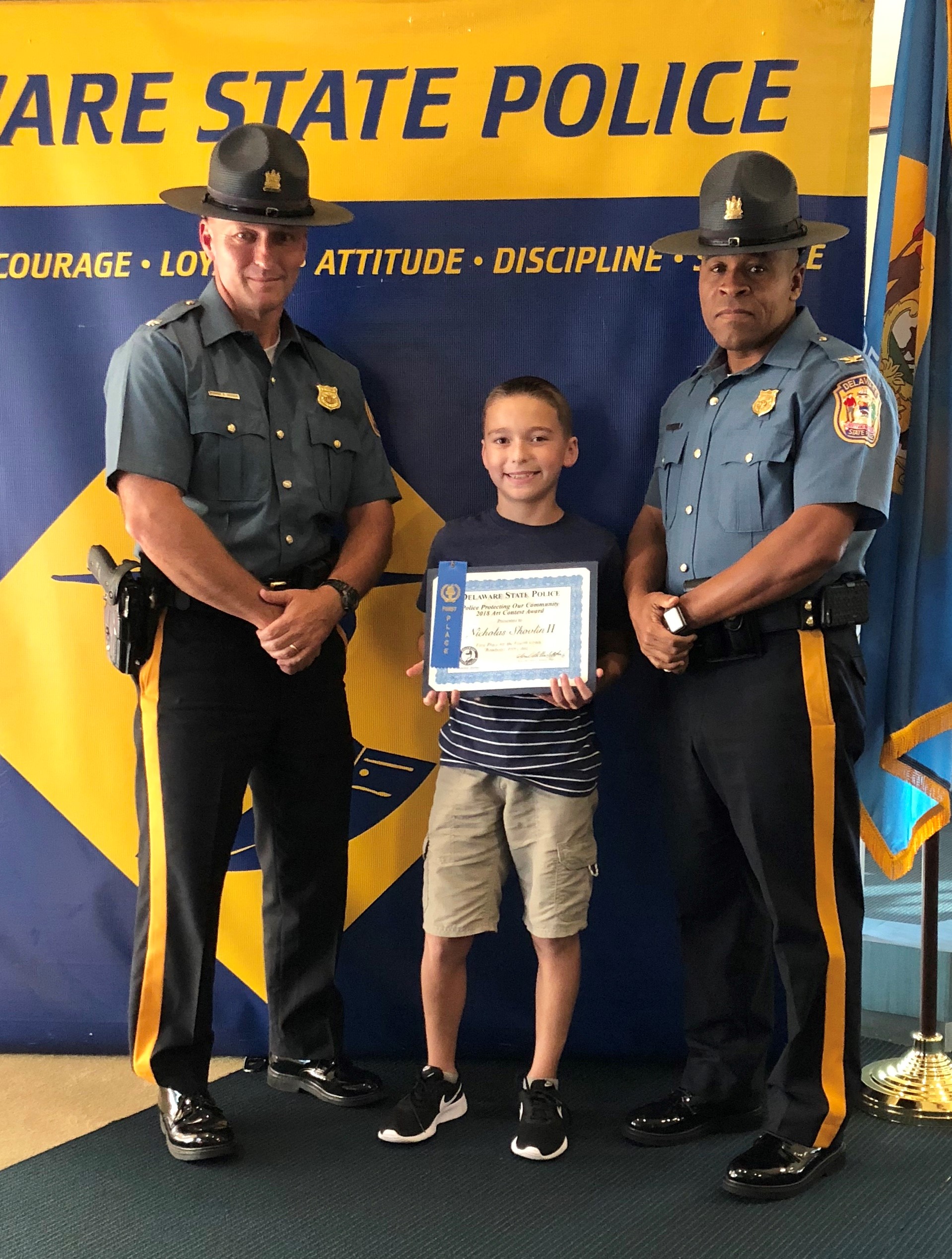 The honorary speaker was our Superintendent of the Delaware State Police, Colonel Nathaniel McQueen Jr. Also those in attendance were Deputy Superintendent, Lieutenant Colonel Monroe Hudson and members of the Delaware State Police Community Outreach Unit. Additionally, several family members and friends of the honored students came out to support the event. Their artwork will be humbly displayed at the Delaware State Police Museum. If you missed the ceremony checkout our Facebook live post of the event on August 9th, 2018.