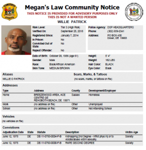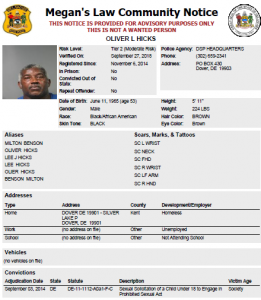 Dover– The following are not wanted. These are Homeless Sex Offender Public Notifications. If you have information that any of the listed subjects are occupying a residence, please call 302-672-5306. Information may also be provided by calling Delaware Crime Stoppers at 1-800-TIP-3333, via the internet at http://www.delaware.crimestoppersweb.com.