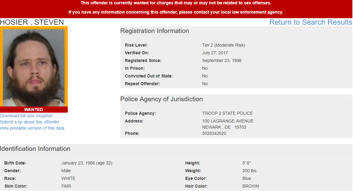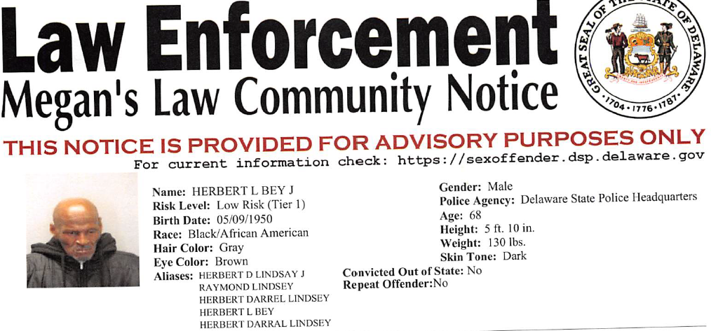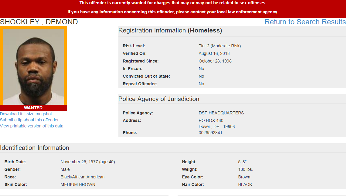 Dover, DE- The Delaware State Police Sex Offender Apprehension and Registration Unit (S.O.A.R) is currently looking for the following wanted sex offenders after they either failed to register or re-register their current address. If anyone knows the location of these subjects, they are asked to call 302-672-5306. Information may also be provided by calling Delaware Crime Stoppers at 1-800-TIP-3333, via the http://www.delaware.crimestoppersweb.com/