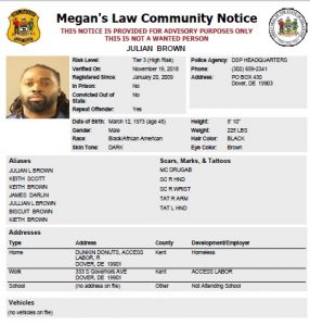 Dover– The following are not wanted. These are Homeless Sex Offender Public Notifications. If you have information that any of the listed subjects are occupying a residence, please call 302-672-5306. Information may also be provided by calling Delaware Crime Stoppers at 1-800-TIP-3333, via the internetat http://www.delaware.crimestoppersweb.com.