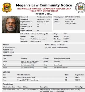 Dover– The following are not wanted. These are Homeless Sex Offender Public Notifications. If you have information that any of the listed subjects are occupying a residence, please call 302-672-5306. Information may also be provided by calling Delaware Crime Stoppers at 1-800-TIP-3333, via the internet at http://www.delaware.crimestoppersweb.com.