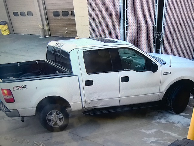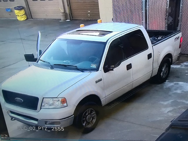 The suspect vehicle is a 2000’s model white Ford F-150 crew cab FX4 Off-Road Edition with a sunroof and missing front right hubcap.