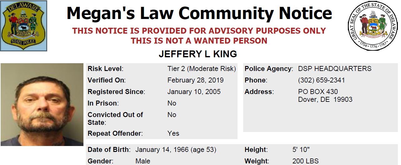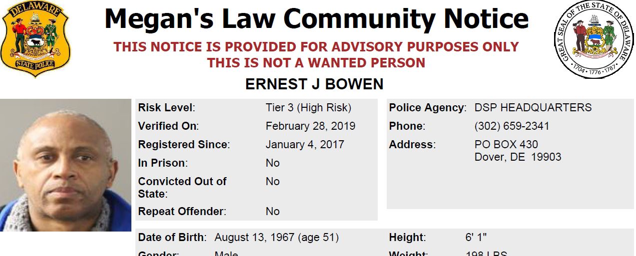 Dover– The following are not wanted. These are Homeless Sex Offender Public Notifications. If you have information that any of the listed subjects are occupying a residence, please call 302-672-5306. Information may also be provided by calling Delaware Crime Stoppers at 1-800-TIP-3333, via the internetat http://www.delaware.crimestoppersweb.com.