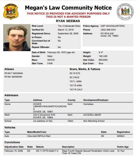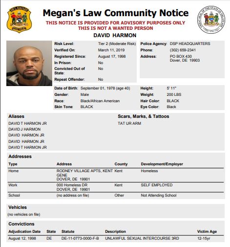 Homeless Sex Offender Notification