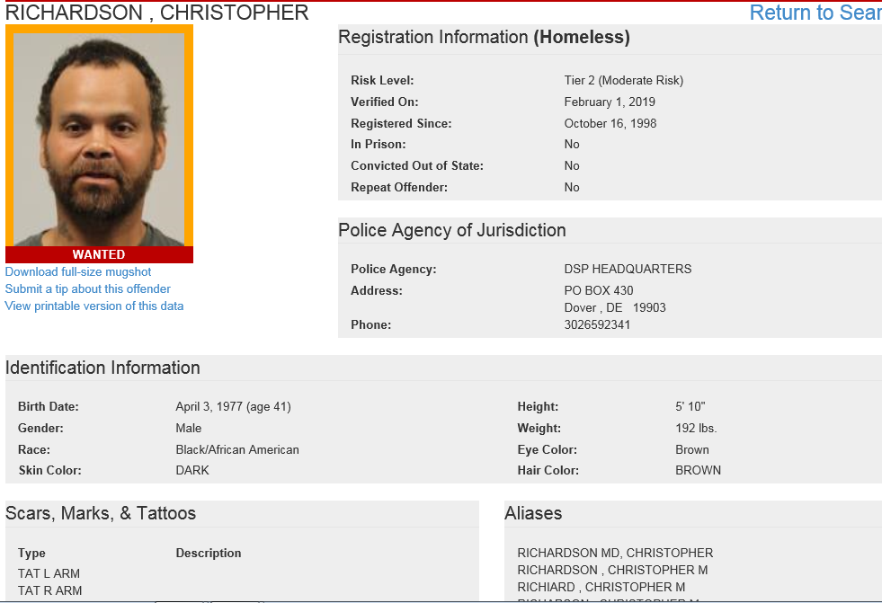 Dover – The Delaware State Police Sex Offender Apprehension and Registration Unit (S.O.A.R) is currently looking for the following wanted sex offenders after they either failed to register or re-register their current address. If anyone knows the location of these subjects, they are asked to call 302-672-5306. Information may also be provided by calling Delaware Crime Stoppers at 1-800-TIP-3333, via the http://www.delaware.crimestoppersweb.com/