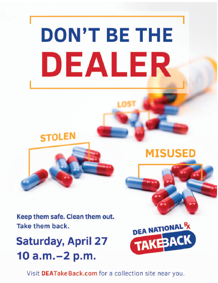 For more information about the disposal of prescription drugs or about the April 27 Take Back Day event, go to the DEA Diversion website.