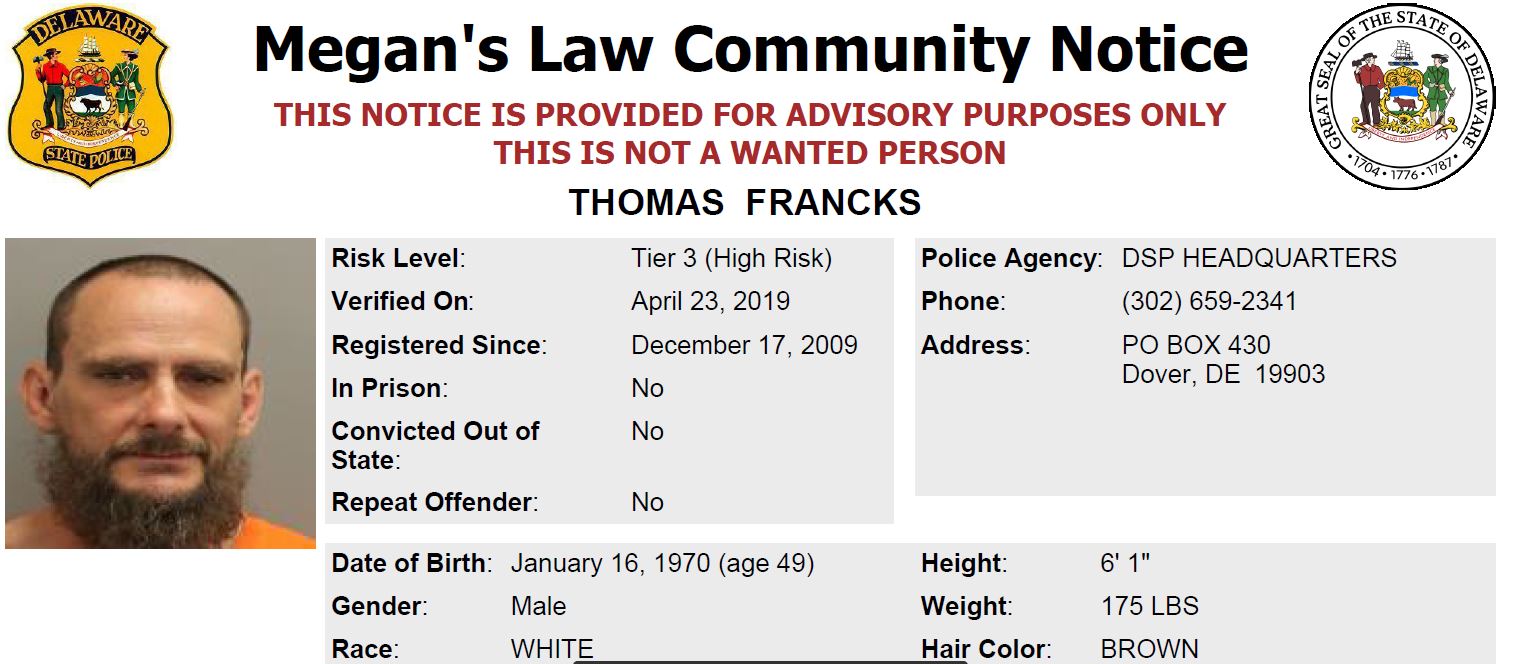 Dover– The following are not wanted. These are Homeless Sex Offender Public Notifications. If you have information that any of the listed subjects are occupying a residence, please call 302-672-5306. Information may also be provided by calling Delaware Crime Stoppers at 1-800-TIP-3333, via the internetat http://www.delaware.crimestoppersweb.com.