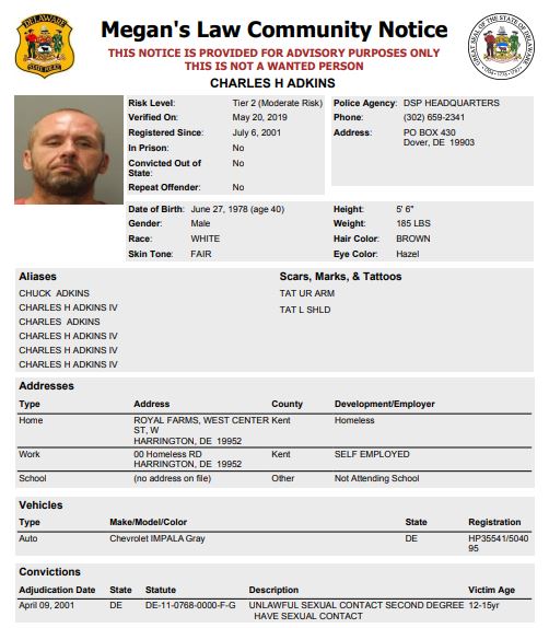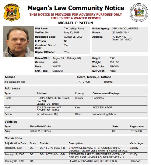 Dover– The following subjects are not wanted. This is a Homeless Sex Offender Public Notification. If you have information that the listed subjects are occupying a residence, please call 302-672-5306. Information may also be provided by calling Delaware Crime Stoppers at 1-800-TIP-3333, via the internet at http://www.delaware.crimestoppersweb.com.