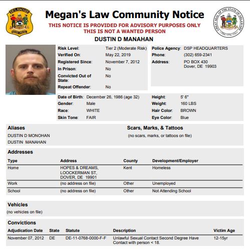 Homeless Sex Offender Notification